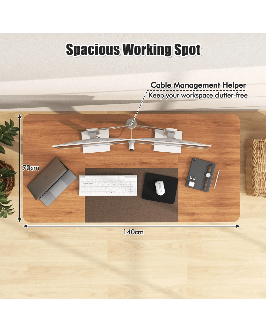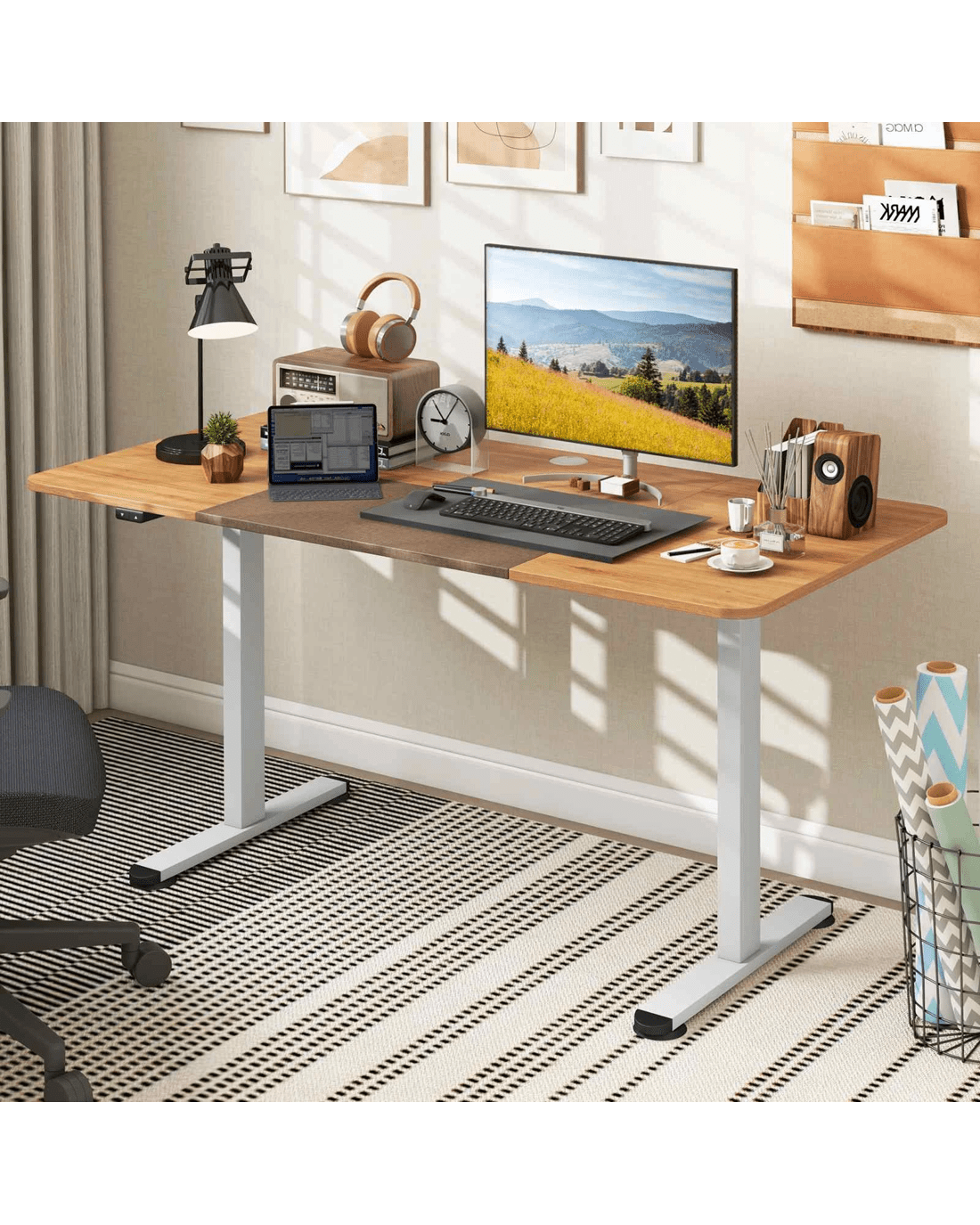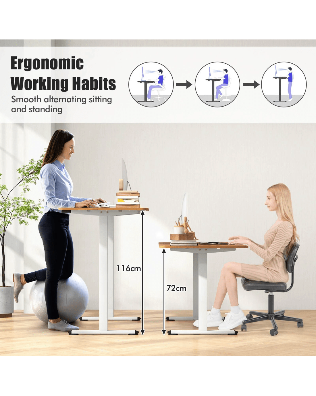 Costway 140cm Electric Standing Desk Motorised Sit Stand Table - Beige