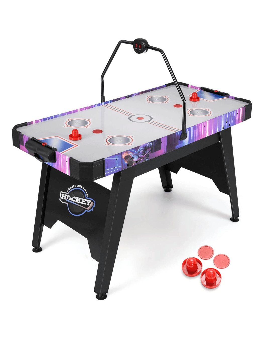 Experience thrilling air hockey games with this full-size table.