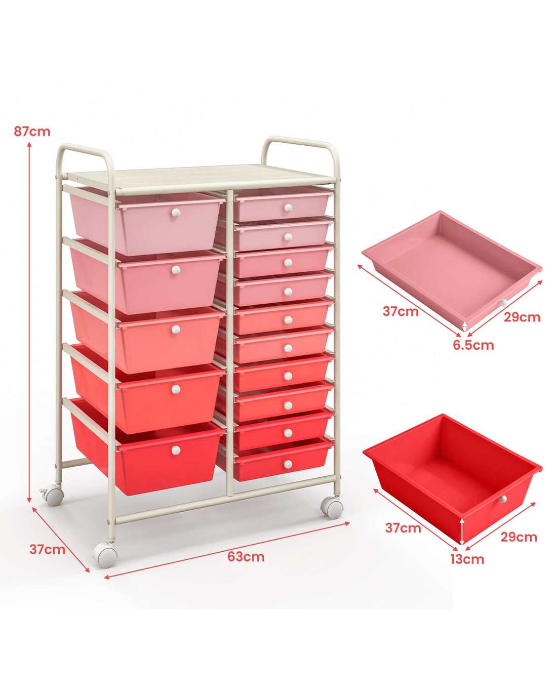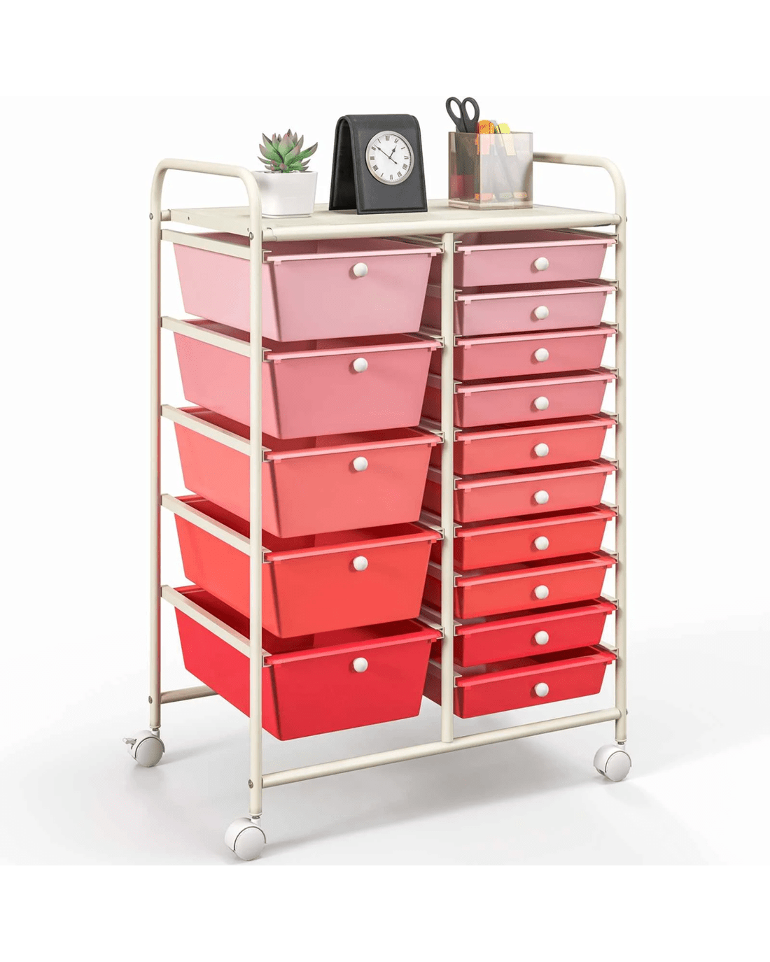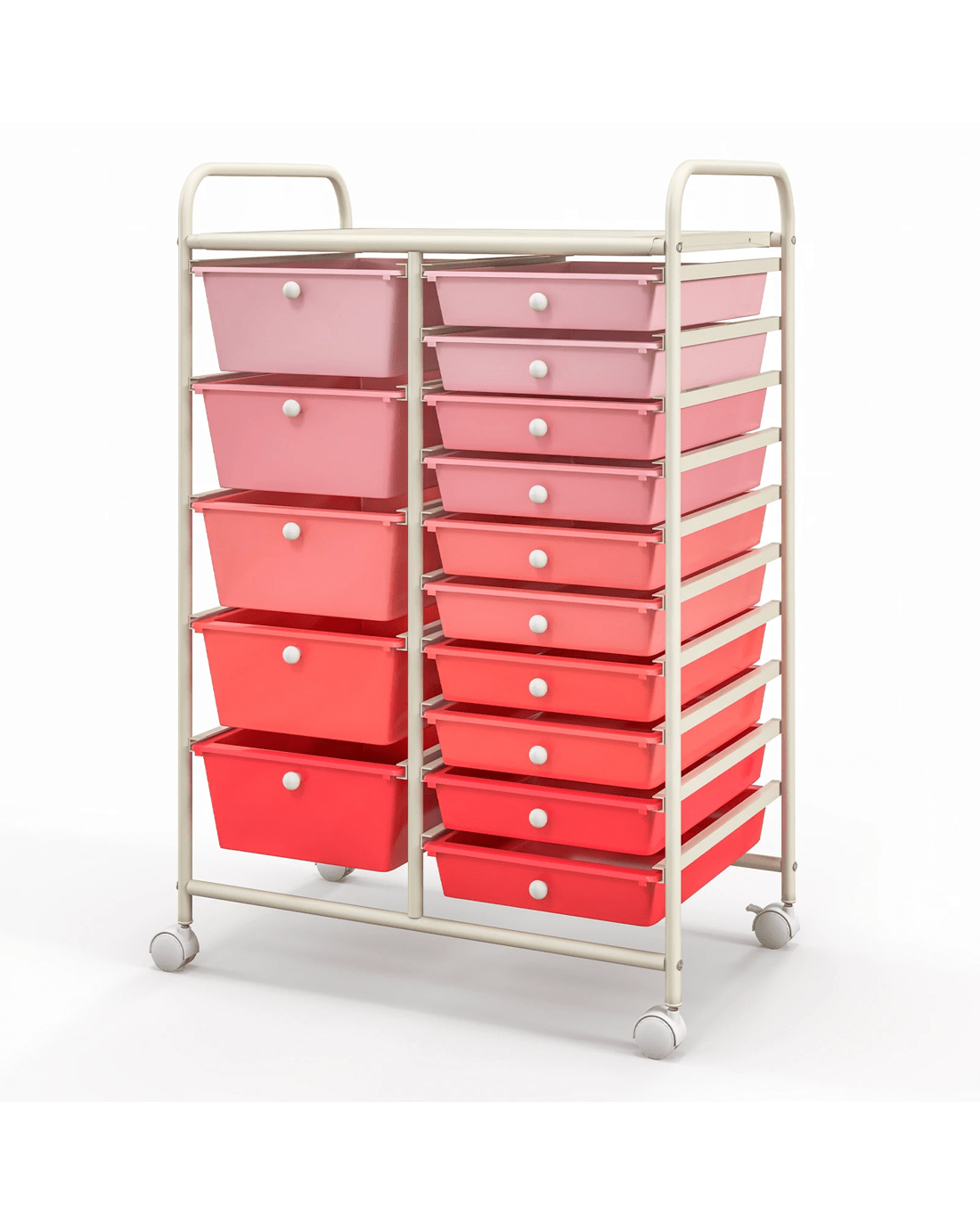 Sold by CostwayCostway 15 Drawers Rolling Storage Cart Mobile Utility Trolley - Pink