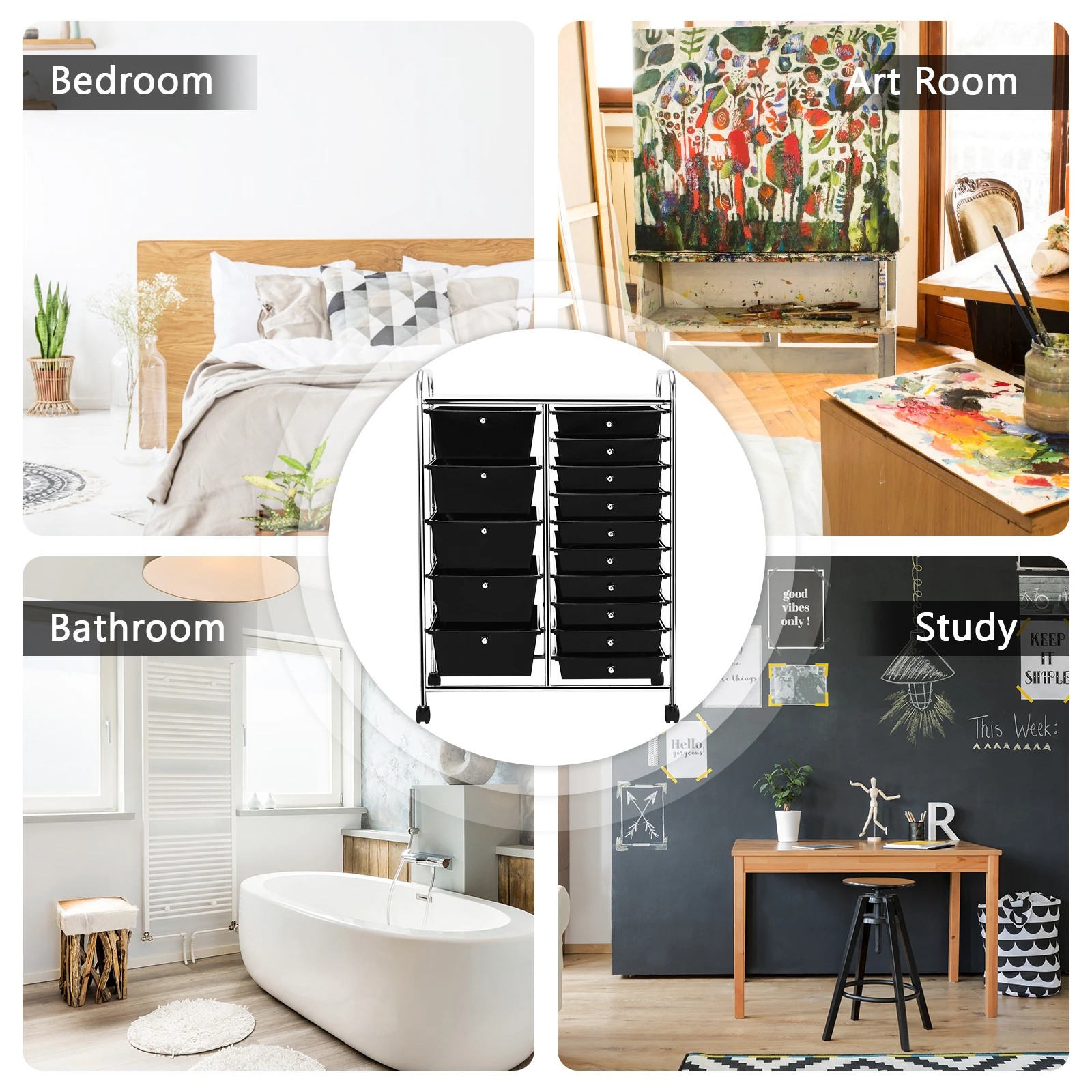 Costway 15 Drawers Rolling Storage Cart Mobile Utility Trolley - Black