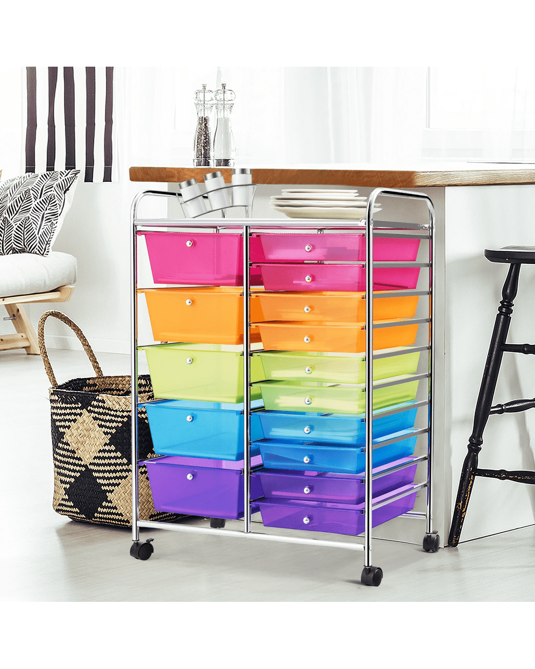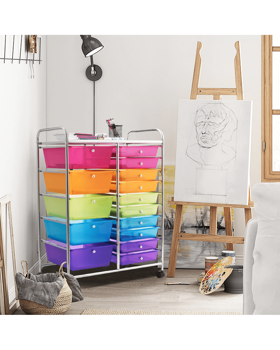Sold by CostwayCostway 15 Drawers Rolling Storage Cart Mobile Utility Trolley - Multi