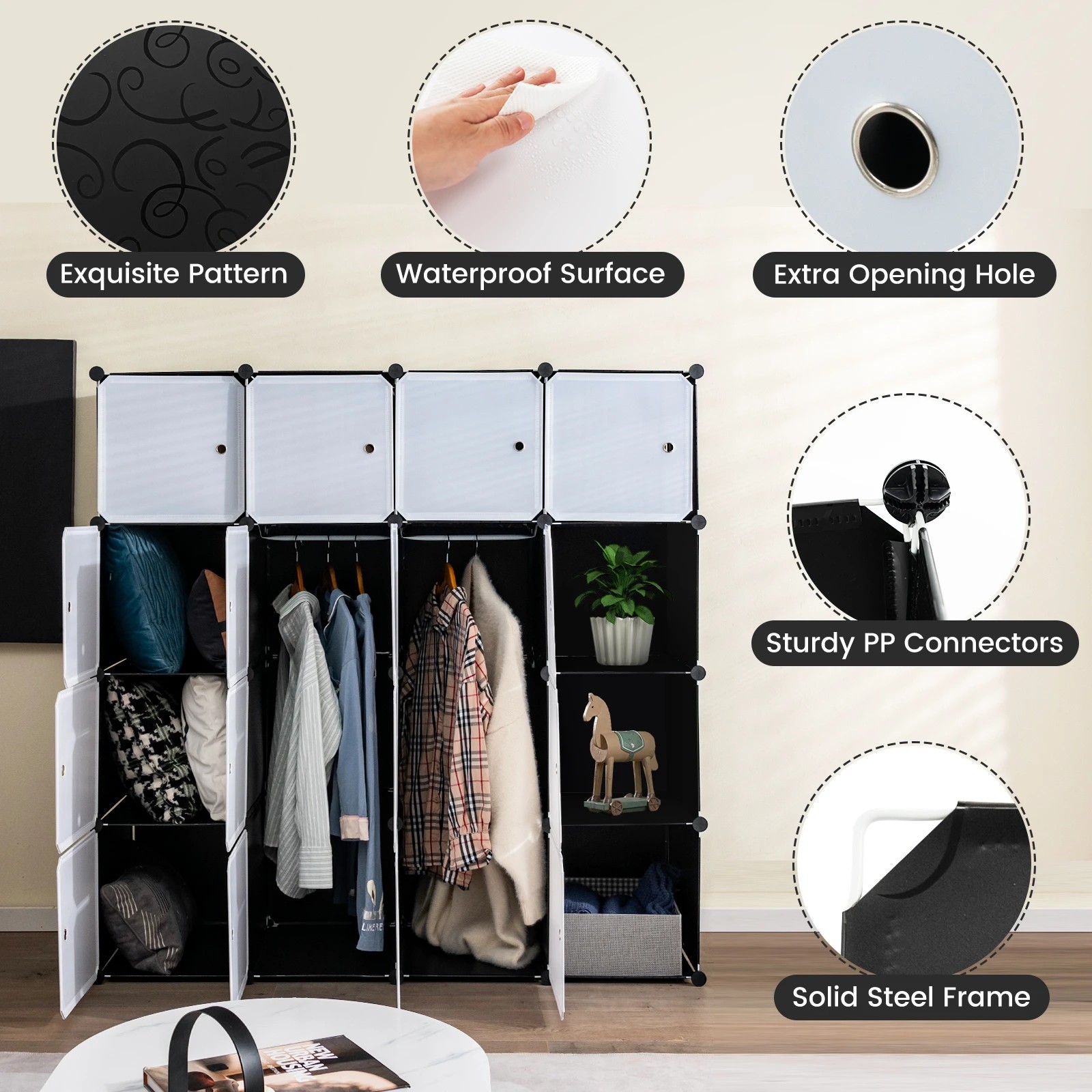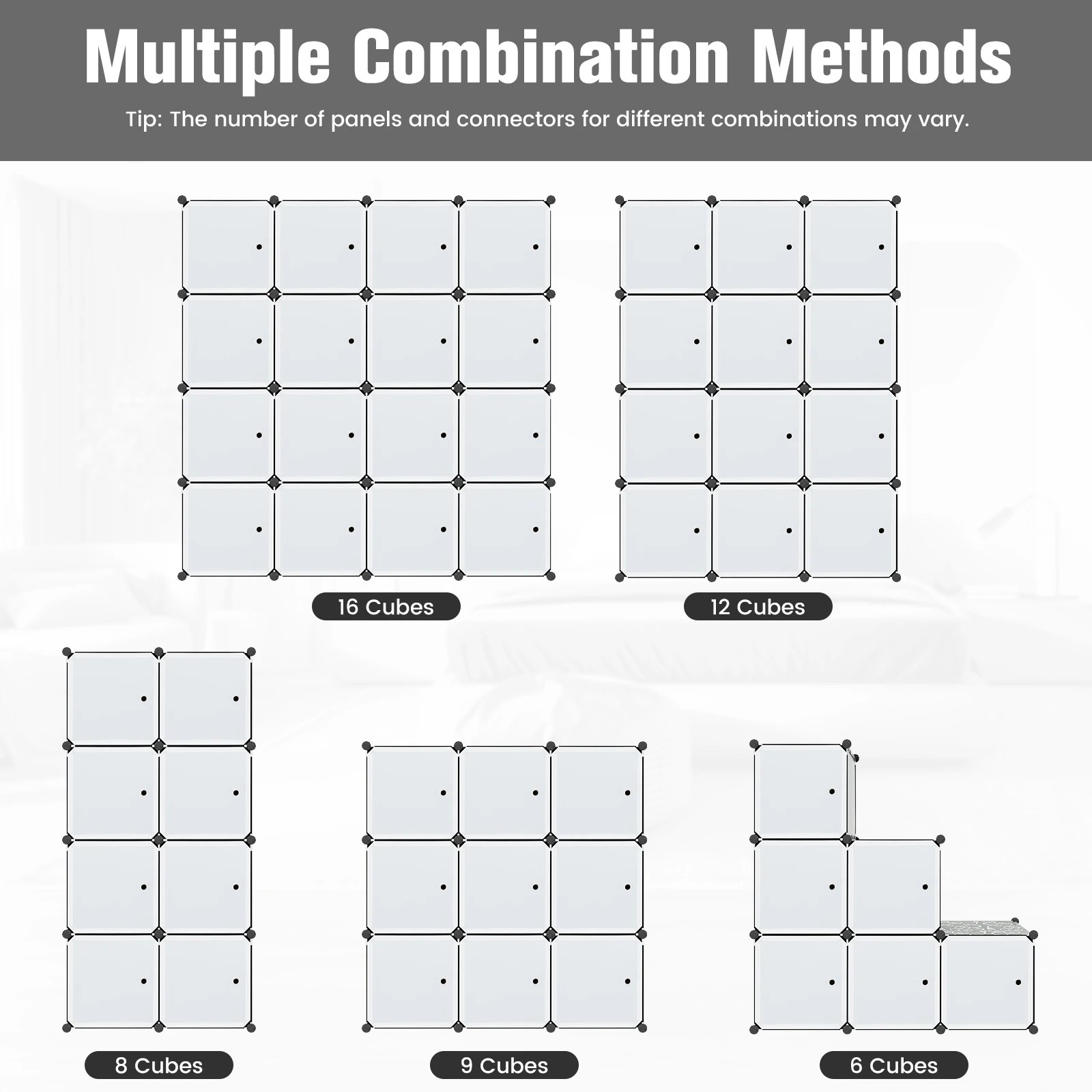 Costway 16-Cube Storage Organiser Portable Wardrobe Closet Combination Armoire
