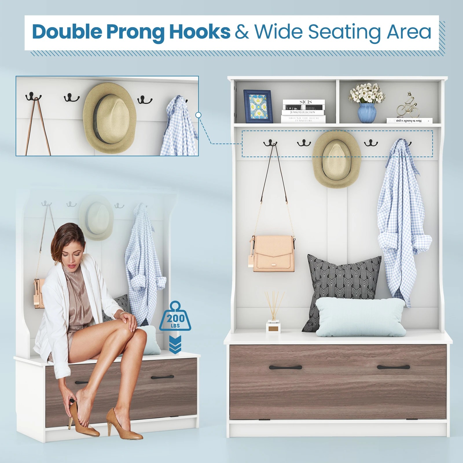 Costway 160cm Hall Tree Coat Clothes Rack Shoe Storage Bench w/Hooks