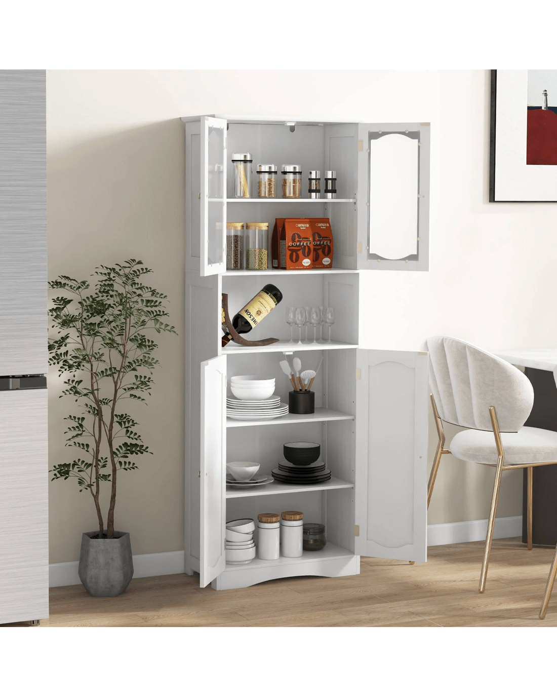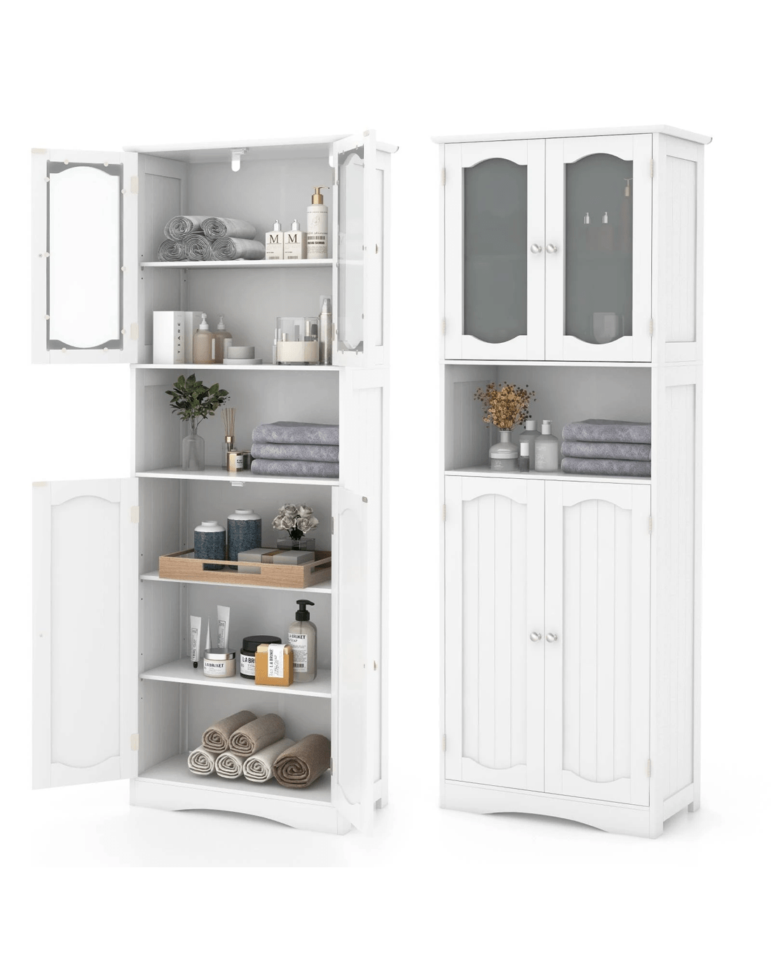 Costway 164cm Tall Bathroom Cabinet Freestanding Storage Cabinet w/Tempered Glass Doors