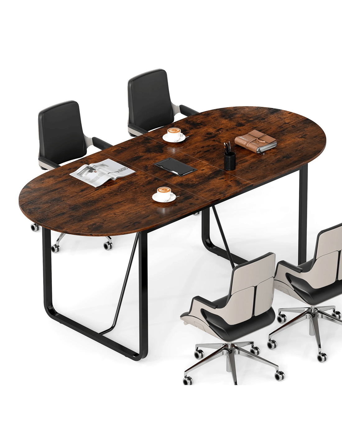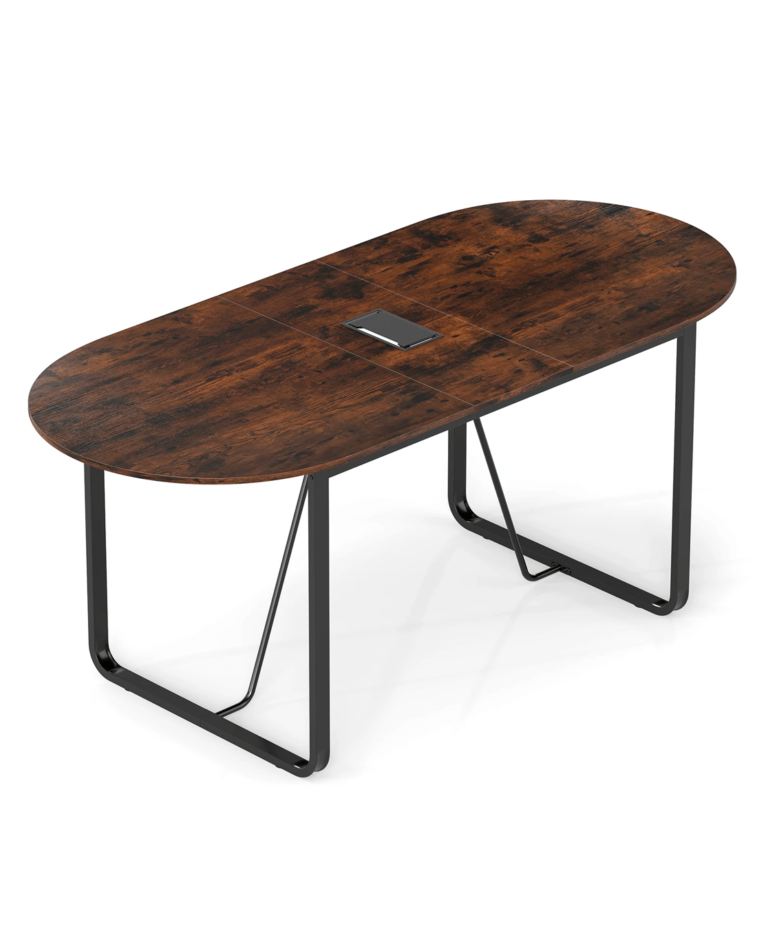 This oval meeting table boasts a generous 180cm tabletop, offering plenty of space for all your office essentials while comfortably seating up to 10 people for larger gatherings. Additionally, center cable management grommet with cover ensure that wires remain neatly organized and discreetly hidden. Constructed with thickened tabletop board and heavy-duty metal frame, this conference table promises exceptional sturdiness and durability. The adjustable foot pads protect your floor and make leveling the table on uneven surfaces a breeze. Whether placed in a reception room, office space, or collaborative area, this versatile conference table is an elegant and practical solution to satisfy all your meeting needs across multiple settings.