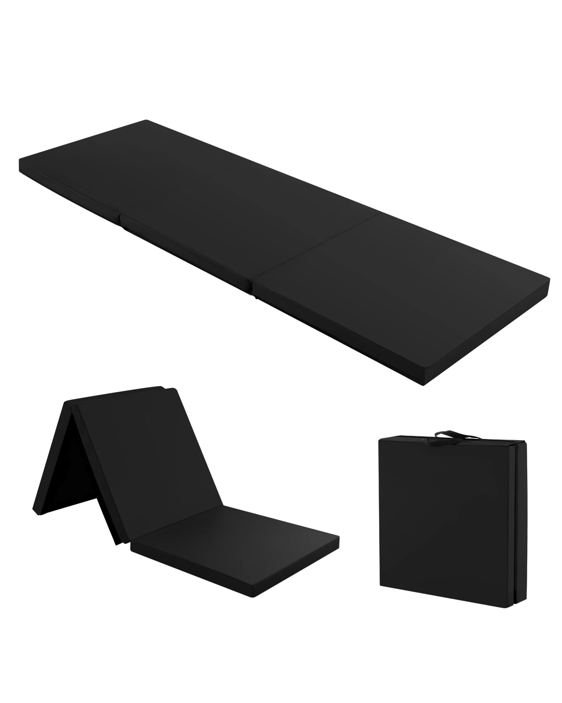 Costway 180x60cm Tri-Fold Gymnastics Mat PU Leather Floor Exercise Yoga Tumbling Mat w/Carry Strap - Black