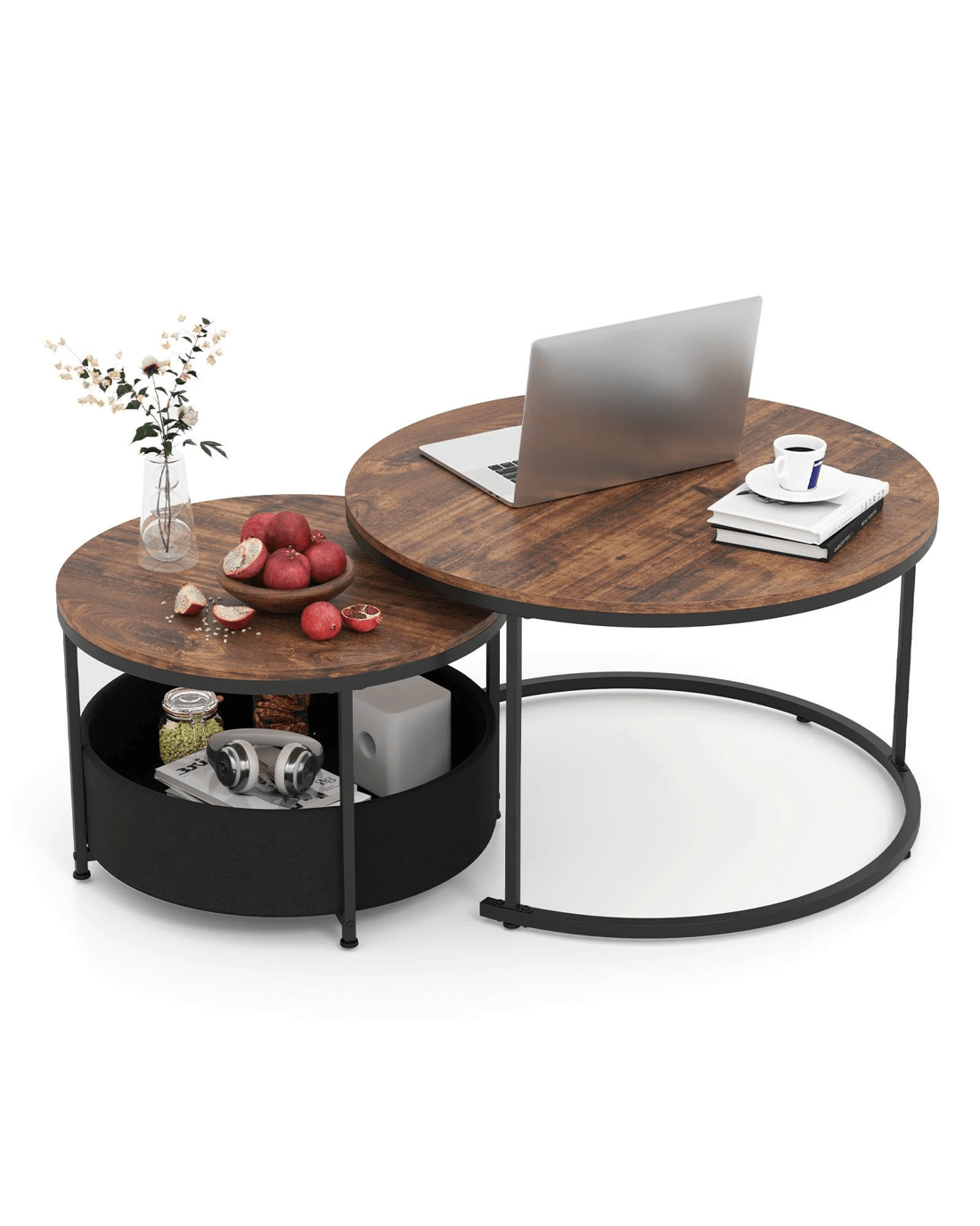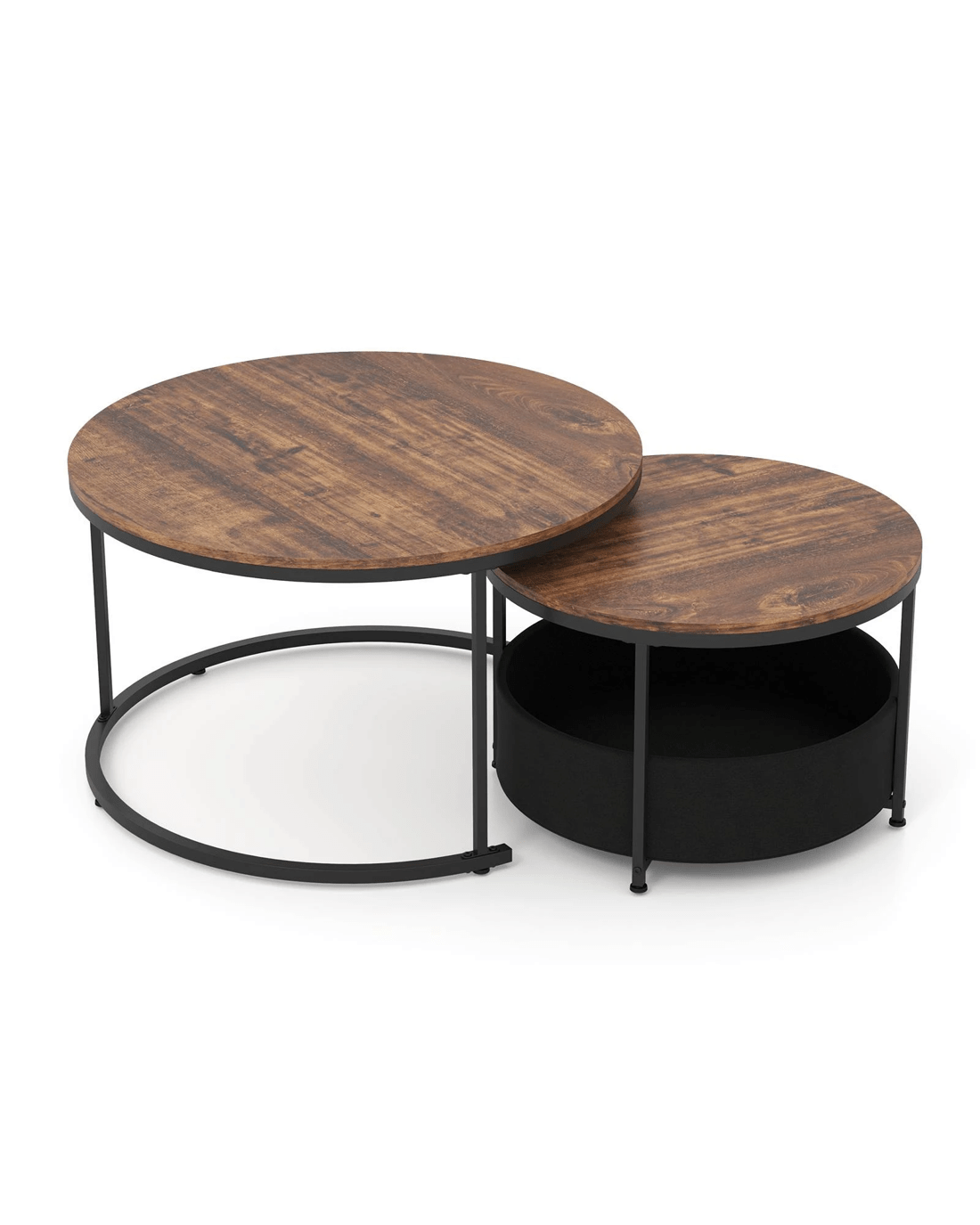 Costway 2 IN 1 Nesting Coffee Table Set of 2 w/Storage Round Sofa Side Table - Brown