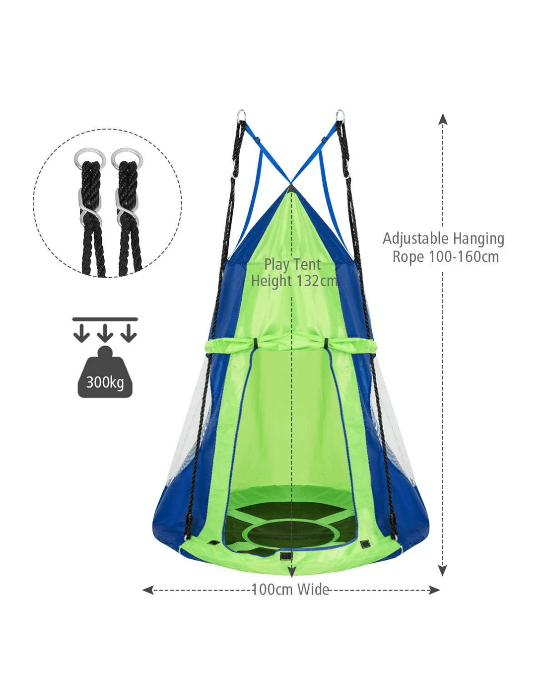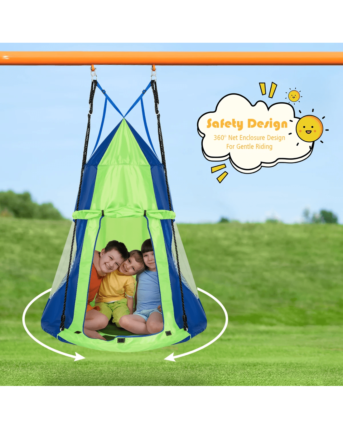 Giant 100cm saucer swing, perfect for 2 or 3 little ones to play togetherThe dome design enlarges the inside capacity
