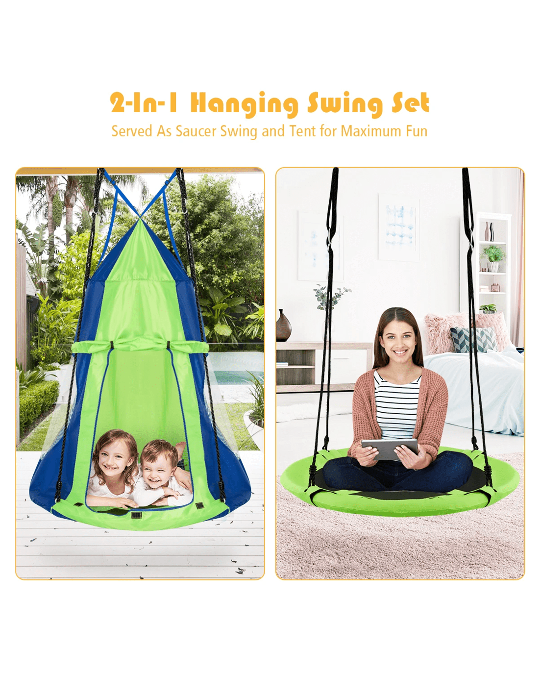 2 in 1 design as a swing and a hanging play tent