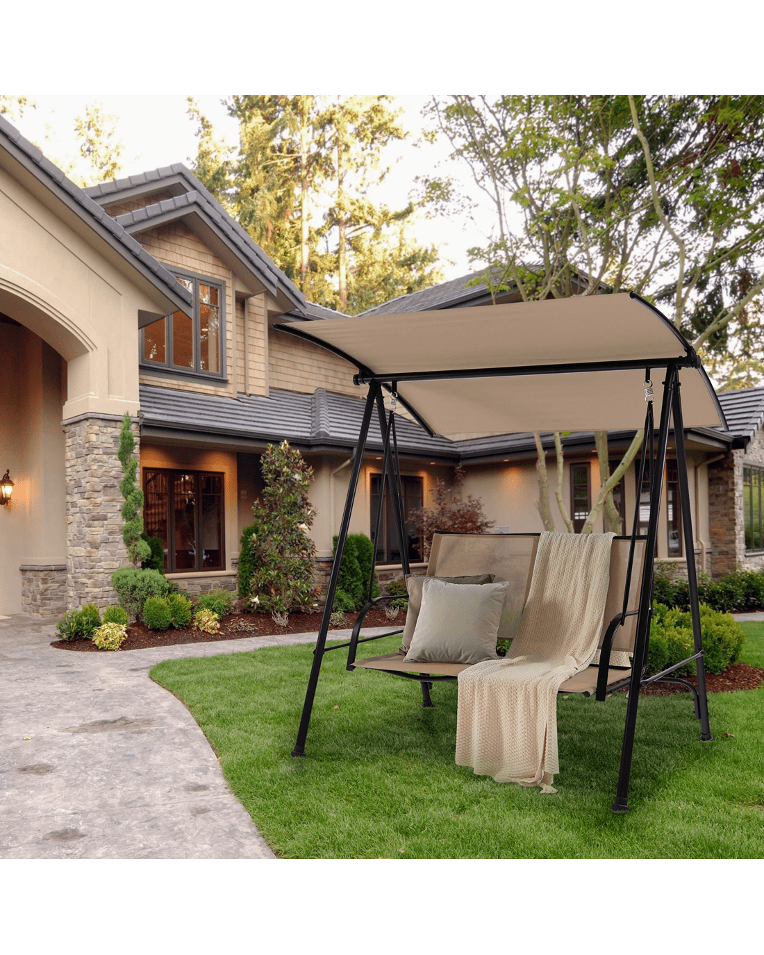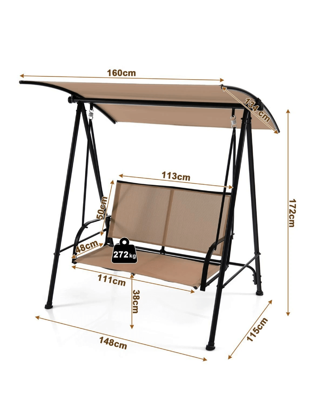Costway 2-seat Outdoor Swing Chair Metal Patio Canopy Swing Bench Black