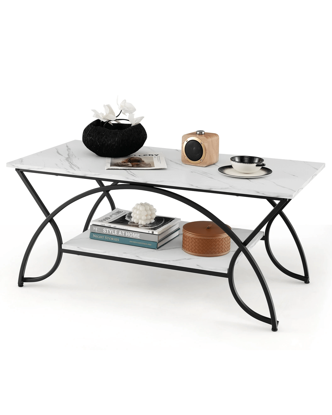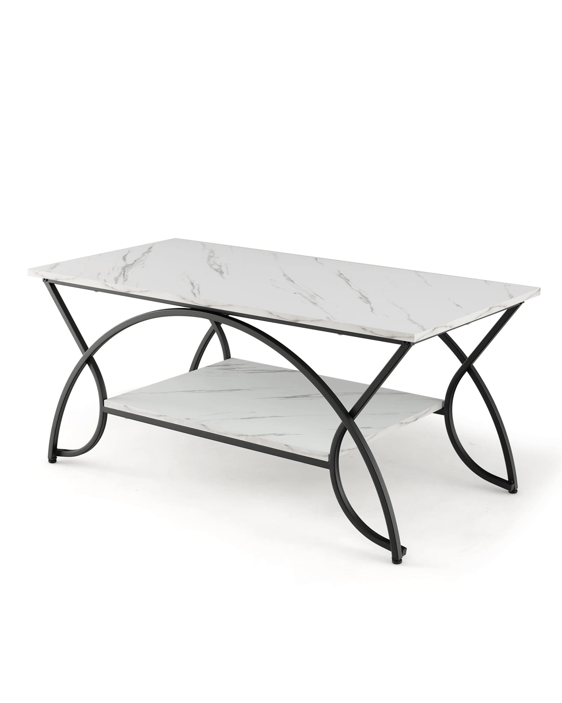Costway 2-Tier Coffee Table Rectangular Cocktail Table w/Arched Metal Frame