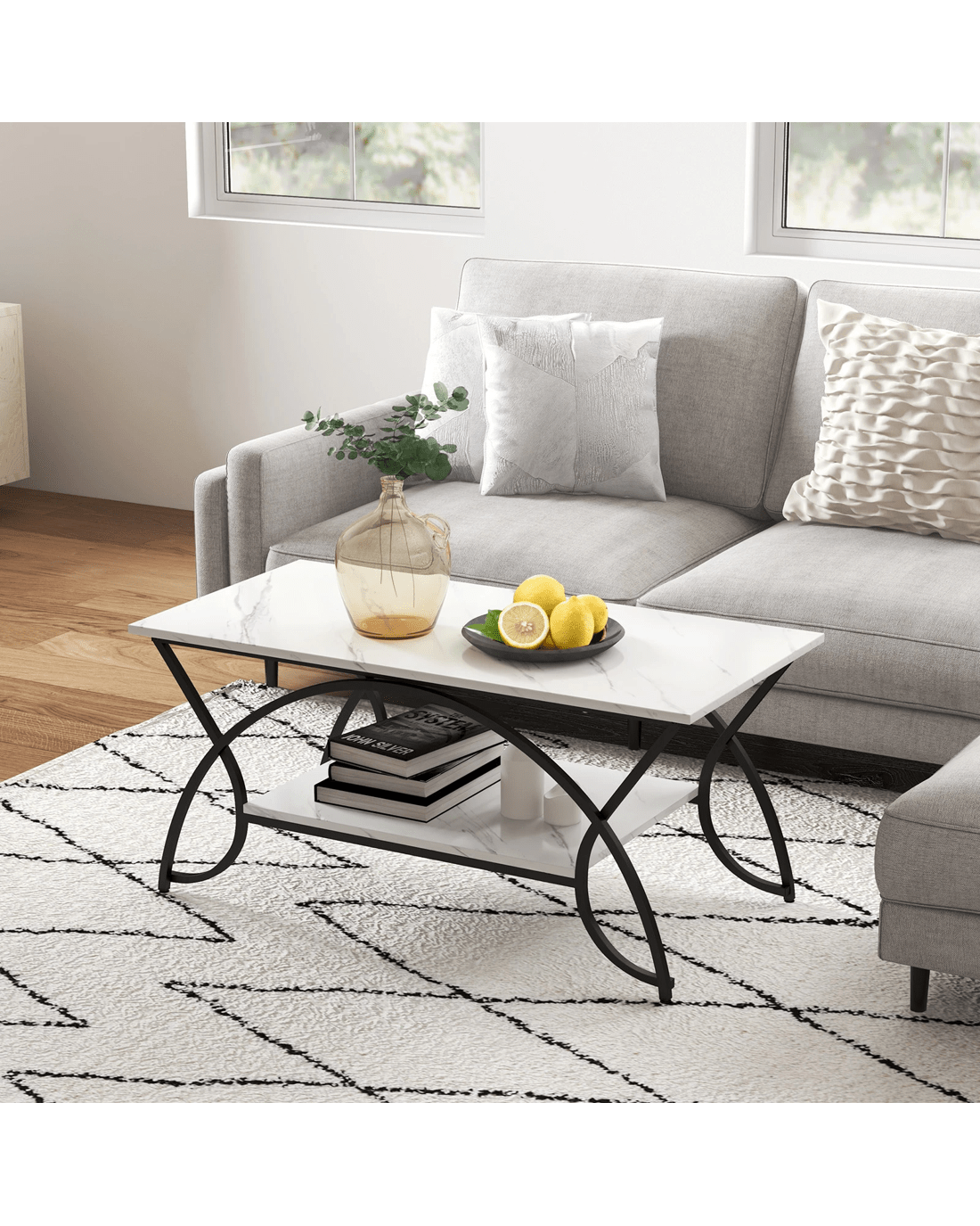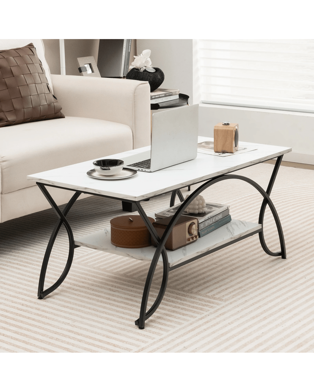2-tier coffee table expands the storage space and make the room organized
