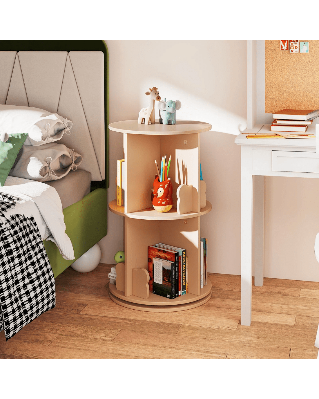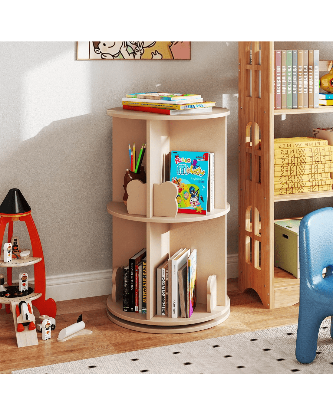 Need a bookshelf that little ones actually love? Take a look at our 2-tier rotating bookshelf!