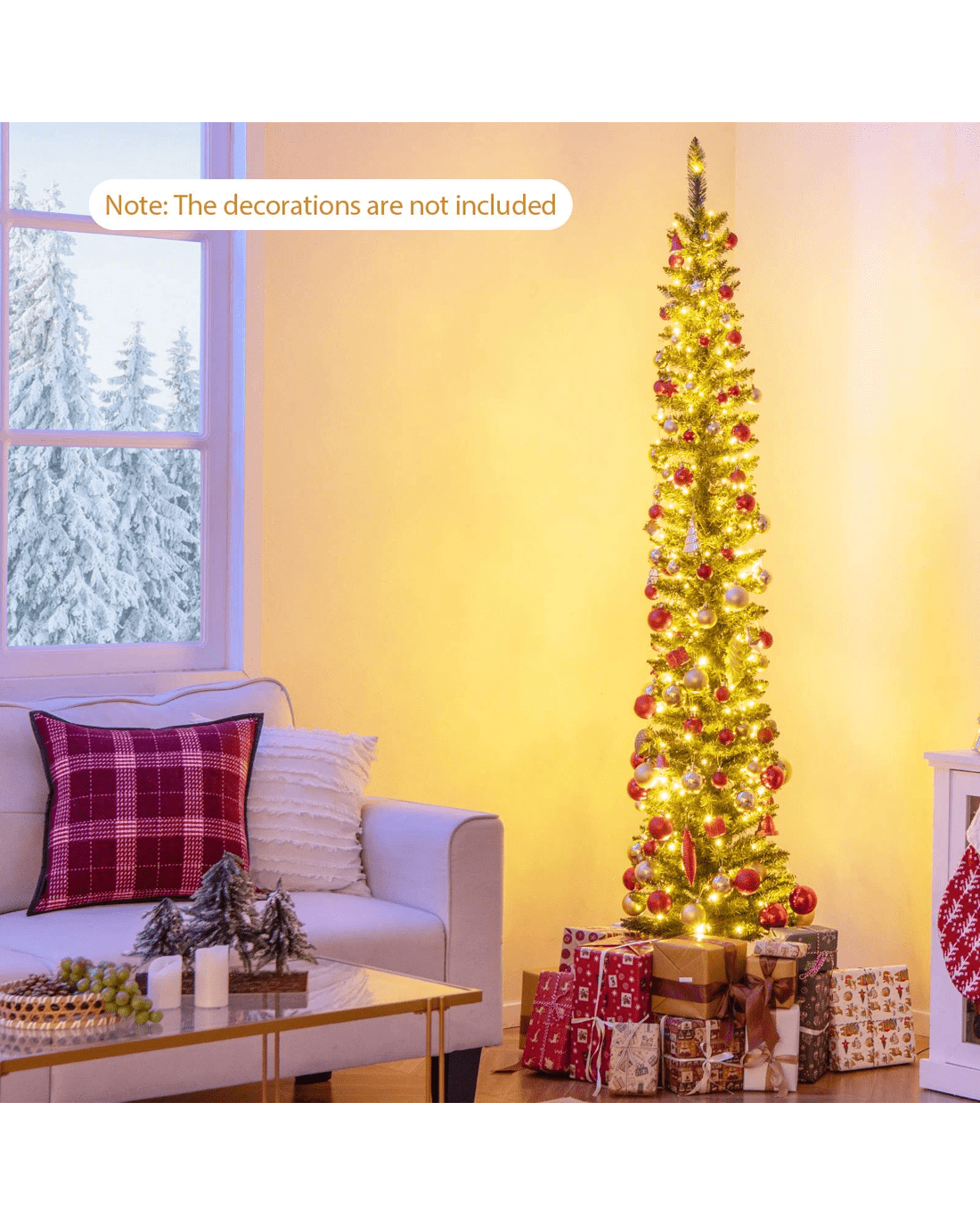 Sold by CostwayCostway 2.1M/7ft Pre-Lit Slim Pencil Christmas Tree w/499 Branch Tips