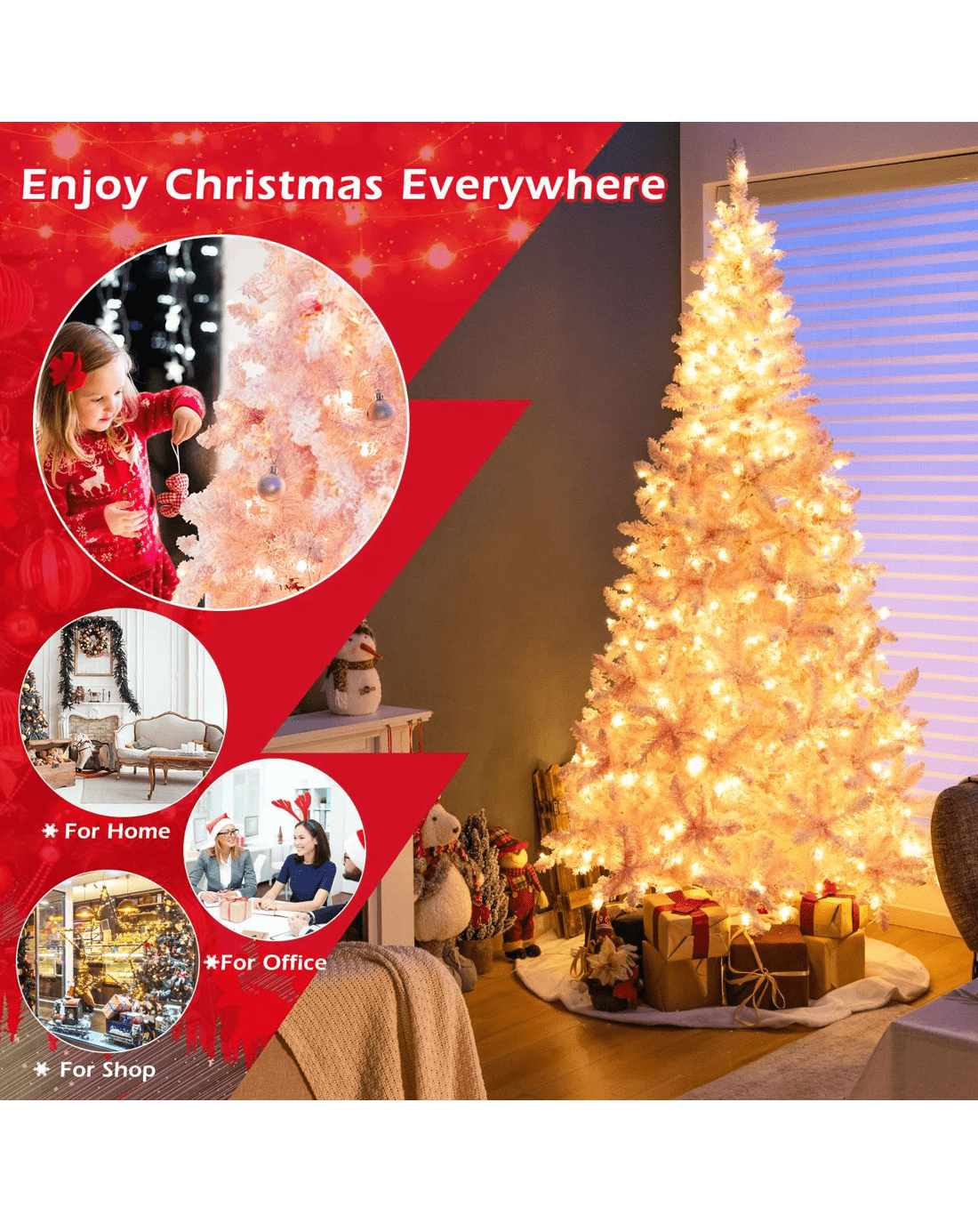 Sold by CostwayCostway 2.2M (7.5ft) Pink Snow Flocked Christmas Tree w/8 Lighting Modes
