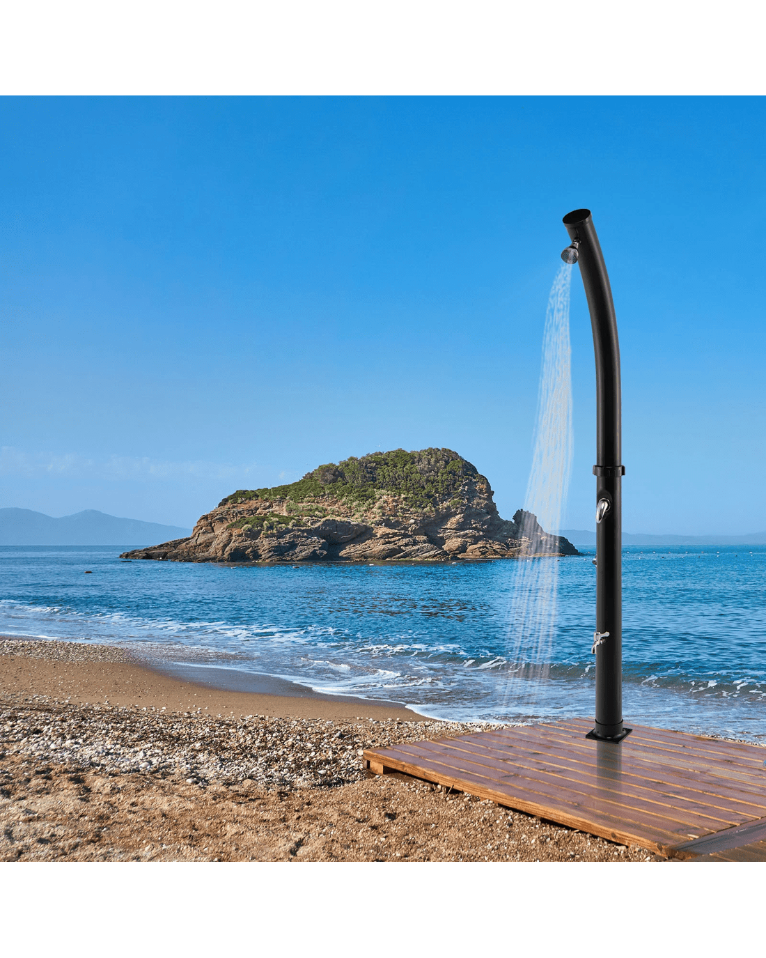 Our 2.2m solar-heated shower requires no electricity, which can not only saves energy but also protect the environment. Besides, it is crafted with premium PVC & chromed ABS material, which can resist all weather and withstand scratches and insolation, providing a long-time enjoyment. And featuring a 20L large water capacity, it can heat water to the temperature of 60 °C. You can also adjust the water temperature and pressure by easily rotating the middle faucet. And there exists a 360° swivel shower head and an additional foot shower to meet your different needs. Other than that, you can choose a 2.5/5cm water hose to inlet water via the water inlet connector or a standard garden hose to inlet water via the 8/10cm male quick connector. The modern and stylish solar shower can also be a highlight of your outdoor spaces.