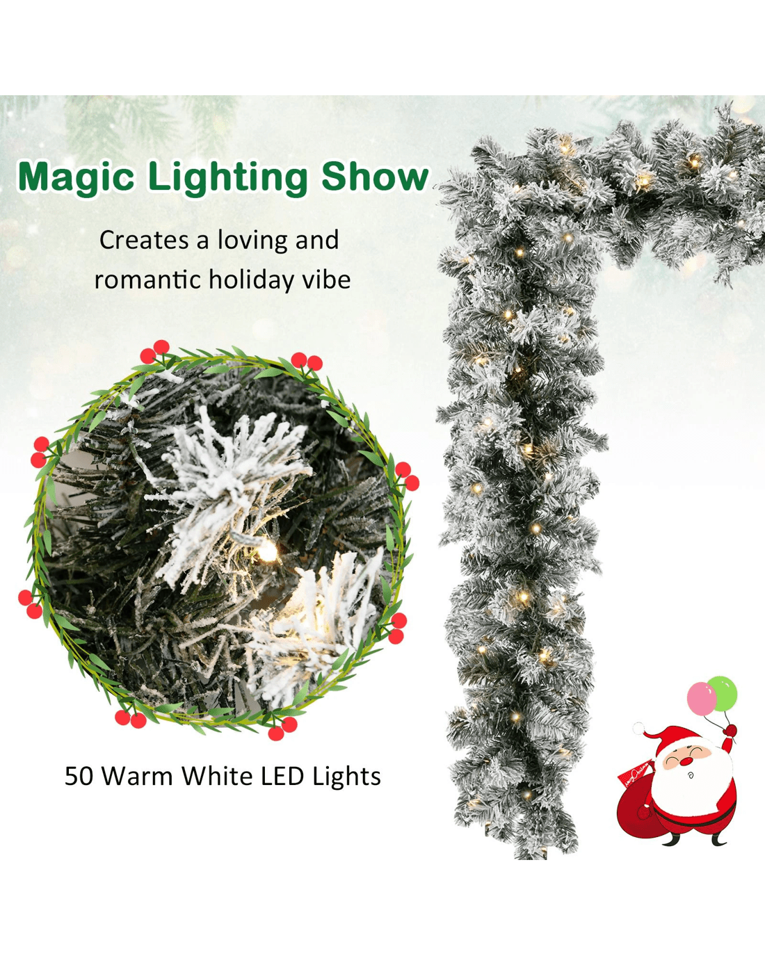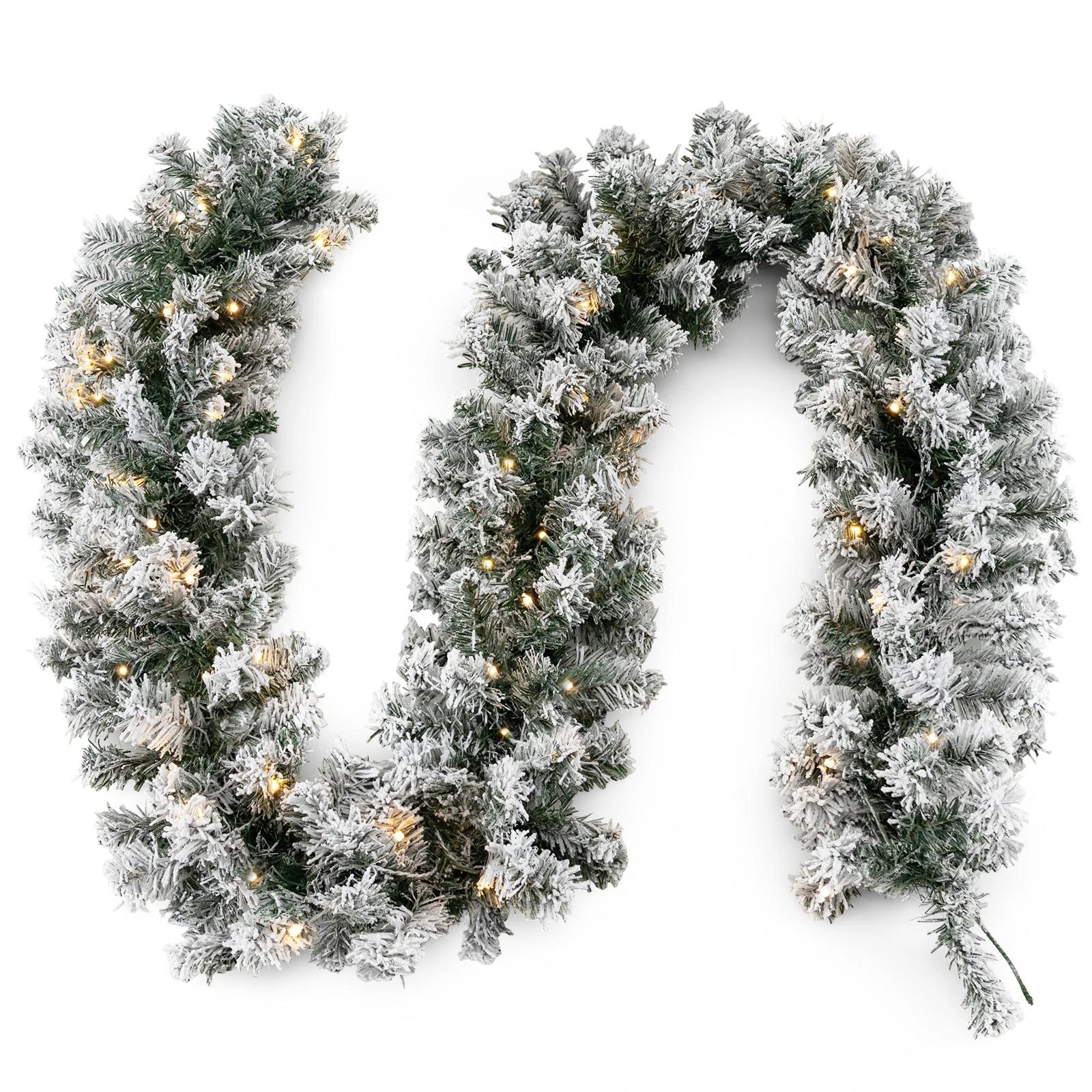 Costway 2.7M Snowy Flocked Christmas Rattan Artificial Flower Vine