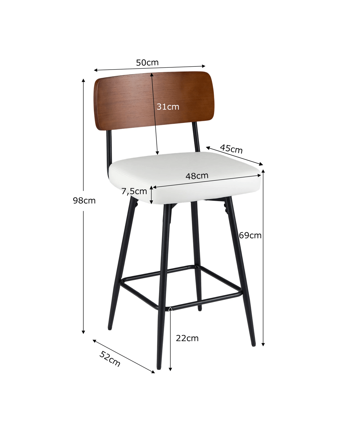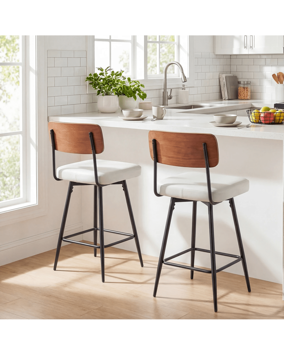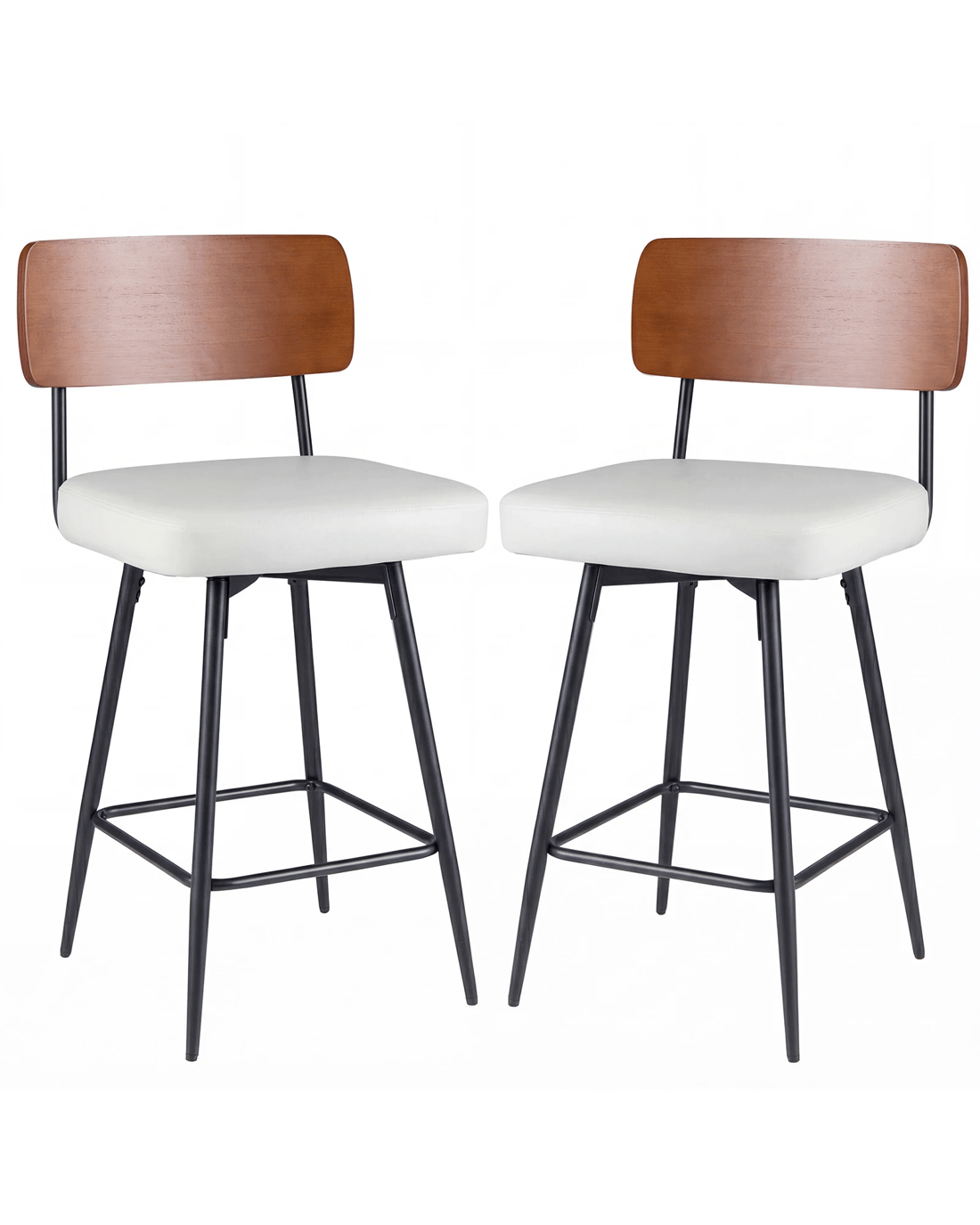 Featuring premium waterproof PU leather and thick sponge padding, the barstools provide lasting comfort and effortless maintenance. The sturdy metal frame with adjustable foot pads ensures stability and reliability, while the curved backrest and large seat offer comfy and sturdy support and relieve your fatigue. Moreover, the 360°swiveling design allows you to easily turn and engage with your surroundings without standing up. Perfectly sized for tables 89 to 99 cm high, this set of 2 stools, with its timeless style and reliable durability, suits dining rooms, kitchen islands, and home bars. Experience seating designed to keep up with your life.