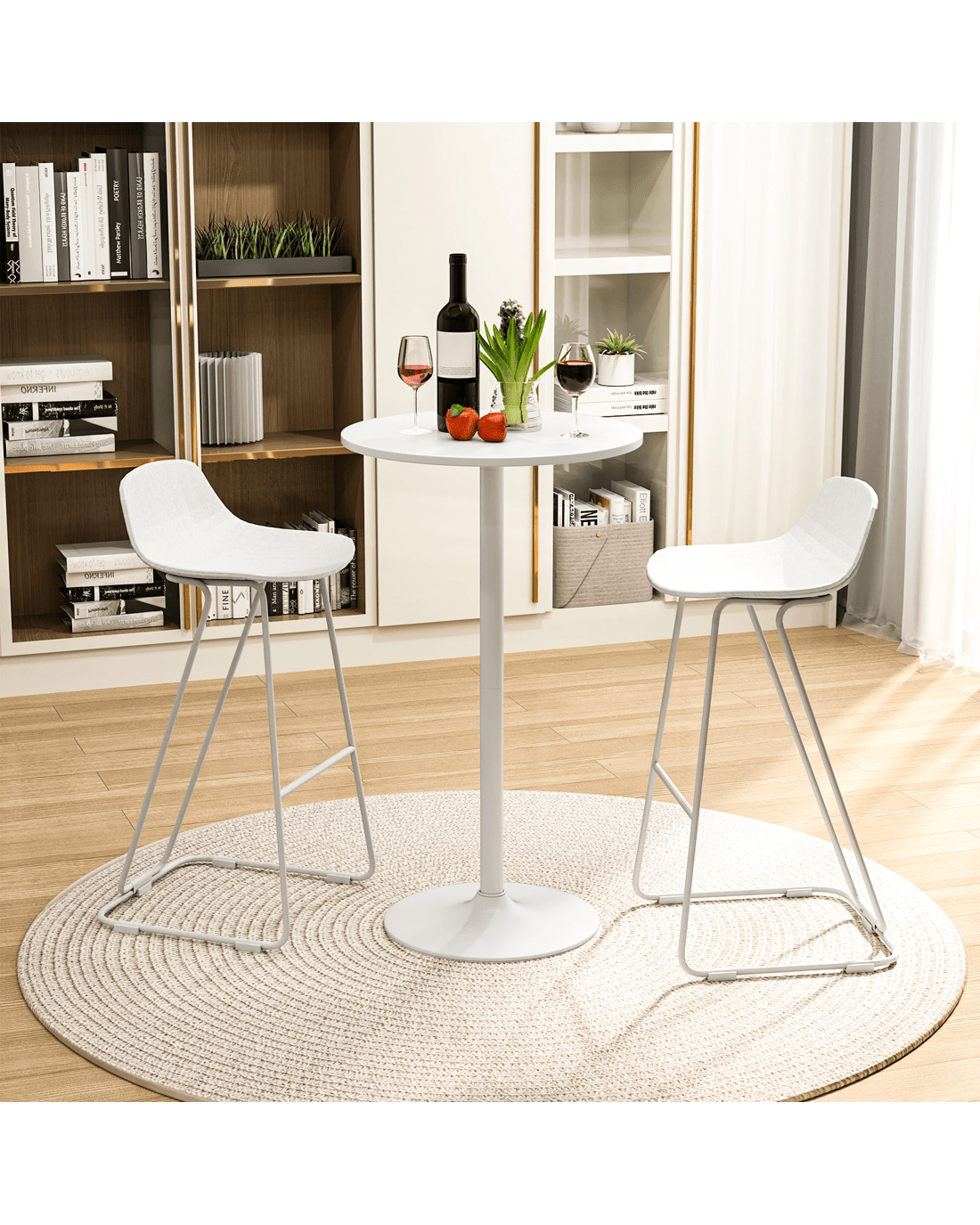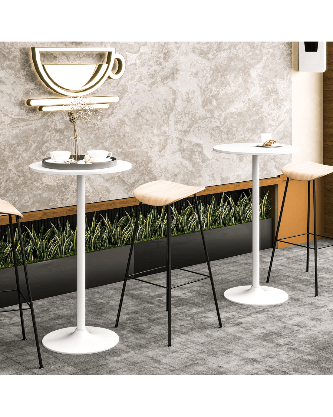 Costway 2PCS Bar Table High Round Coffee Table Bistro Cocktail Table Pub Cafe Dining Side Table - White