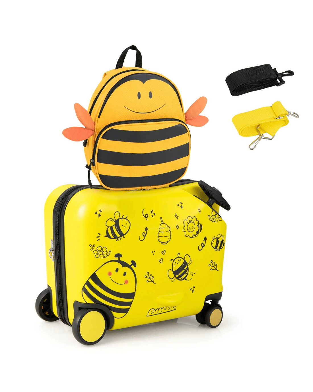 Costway 2PCS Ride-on Luggage Set 18" +12" Backpack Suitcase - Yellow
