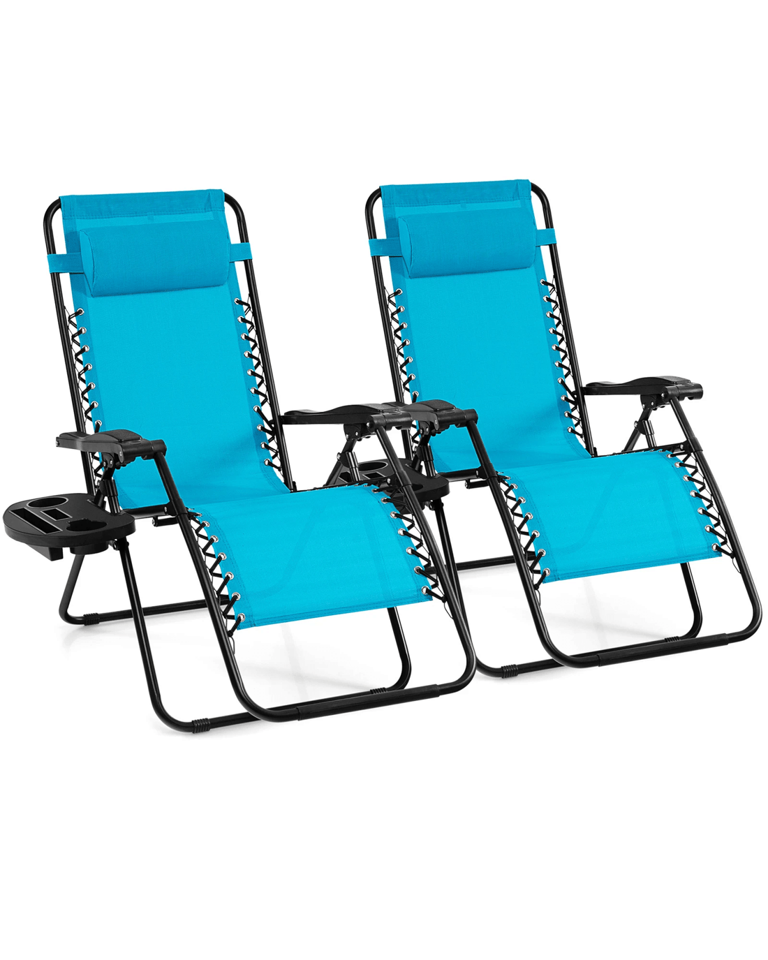 Costway 2x Folding Zero Gravity Chair Patio Sun Lounge Recliner w/Side Tray - Blue