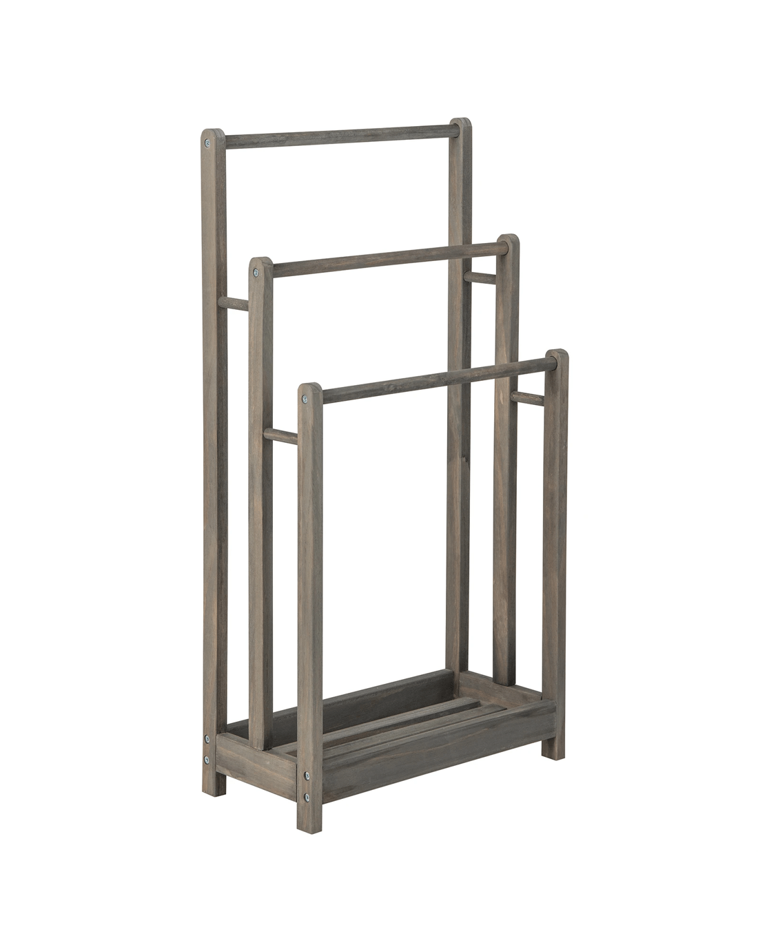 Featuring 3-bar for hanging towels and a bottom storage shelf, this wood towel rack provides ample space for storing bath towels, hand towels, or other accessories. It can also be used to display blankets or air dry clothing in a laundry room. The solid fir wood construction gives the towel rack stand excellent stability. With anti-toppling device, you can attach the drying stand to the wall for more stability. This rustic brown wood towel drying stand brings functionality and adds a touch of classic style to your home bathroom, laundry room or hotel.