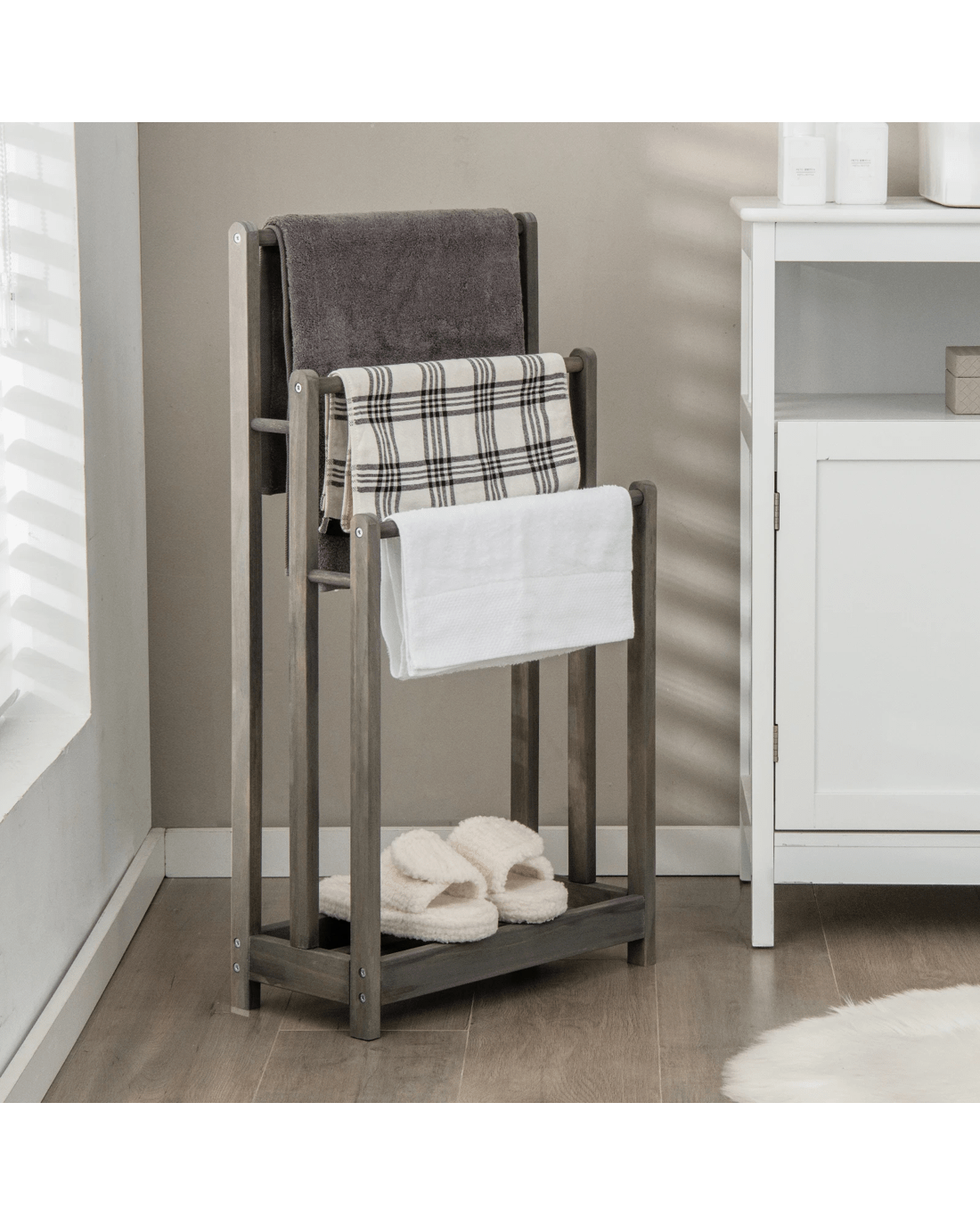 Keep your bath towels dry, clean and within reach with this 3-tier towel rack!
