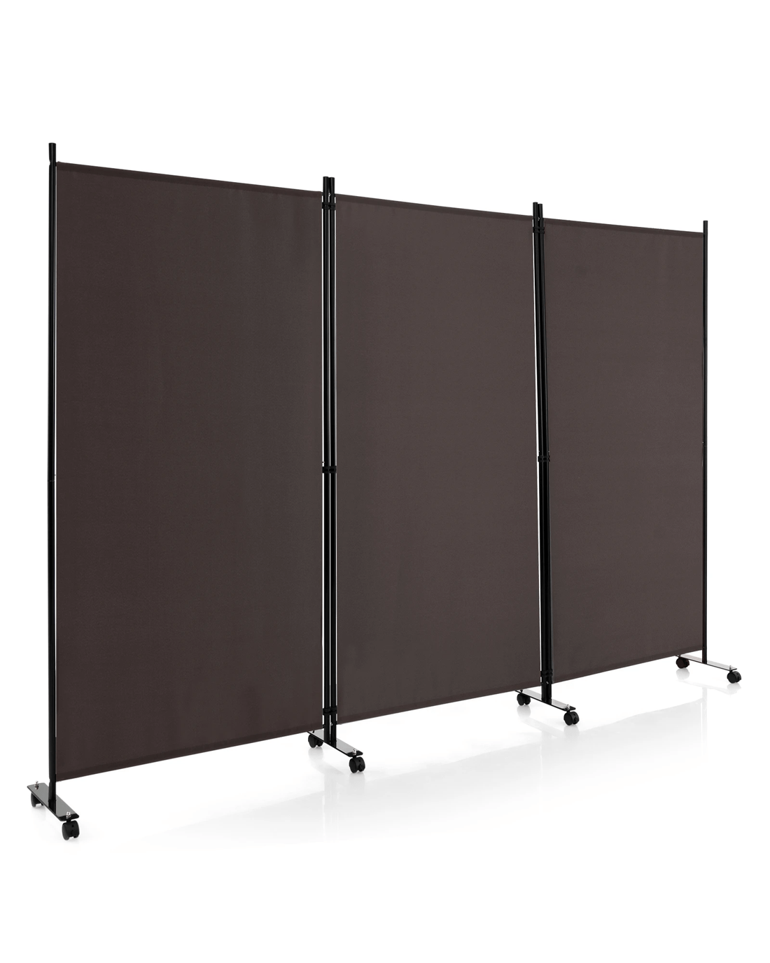 Costway 3 Panels Folding Tall Room Divider Mobile Privacy Screen Wall Partition Home Office - Brown