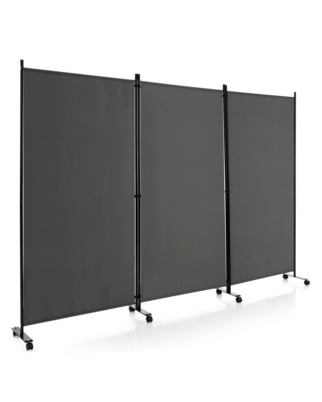 Costway 3 Panels Folding Tall Room Divider Mobile Privacy Screen Wall Partition Home Office - Grey