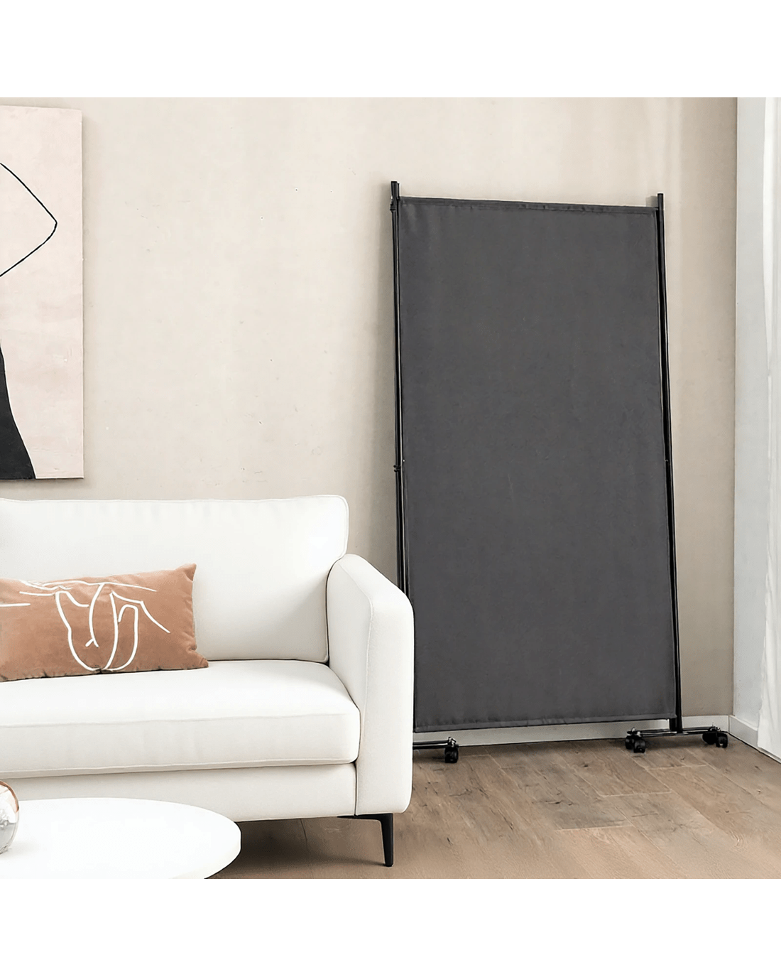 The frame of the room divider is made of high quality metal, which has good stability. The metal has been treated with a powder-coating process, which provides excellent rust resistance. In addition, the surface of the screen is made of high-quality woven fiber, which is not only wear-resistant, but also easy to clean. Meanwhile, the room divider comes with eight lockable universal wheels, allowing you to move it freely. Each panel can be used individually or combined together with connecting clasps. Thanks to this feature, you can easily store or transport it when you're not using it. The 262 cm x 180 cm enlarged screen will fit most interior spaces! You can put it in your living room, bedroom, office, etc.