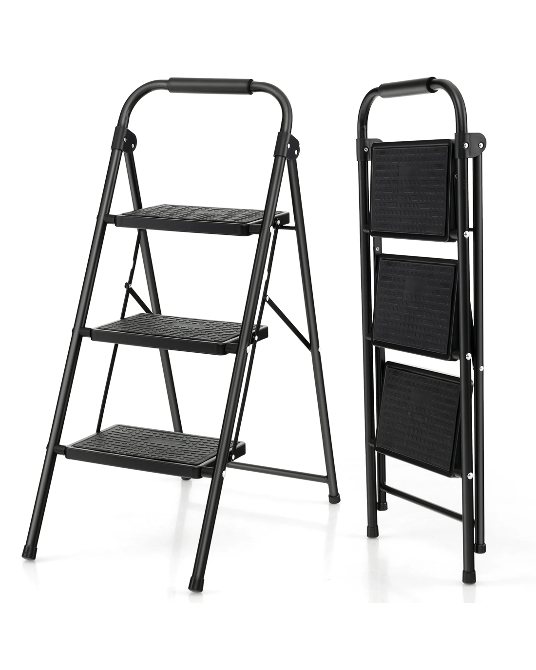 Costway 3 Steps Ladder Folding Step Stool Heavy-Duty Steel Ladder 150kg Load