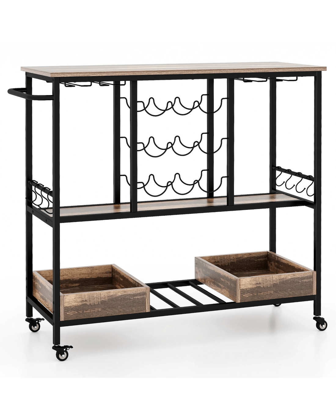 Costway 3-Tier Bar Cart Mobile Drinks Trolley Wine Rack - Grey
