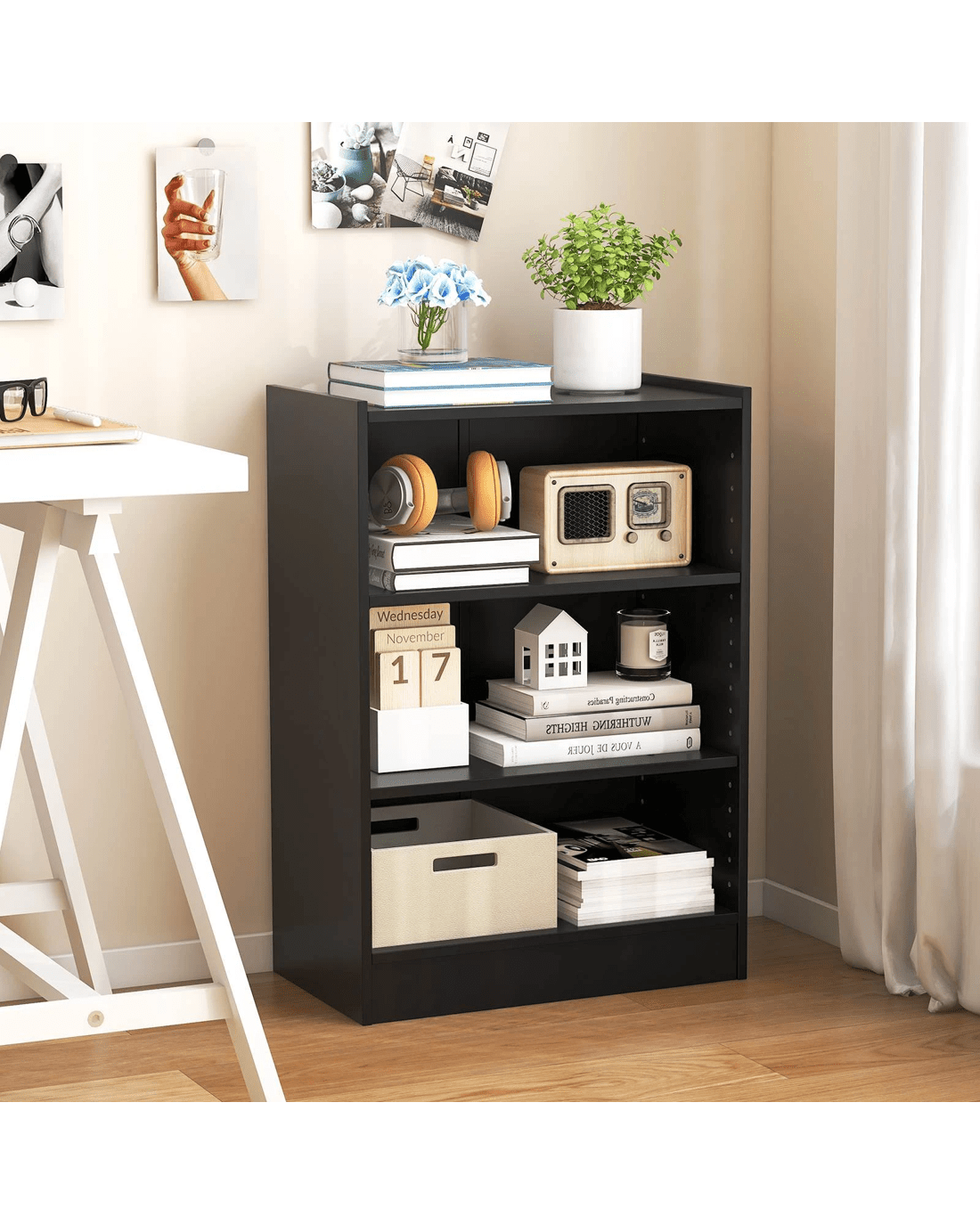 3-tier open bookcase provides ample storage space for items