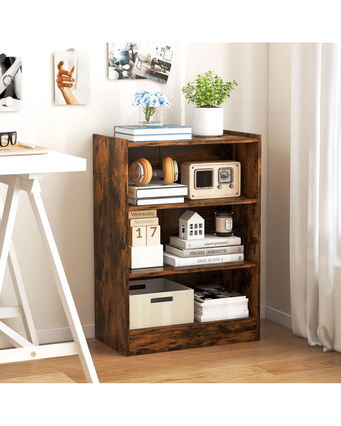 3-tier open bookcase provides ample storage space for items