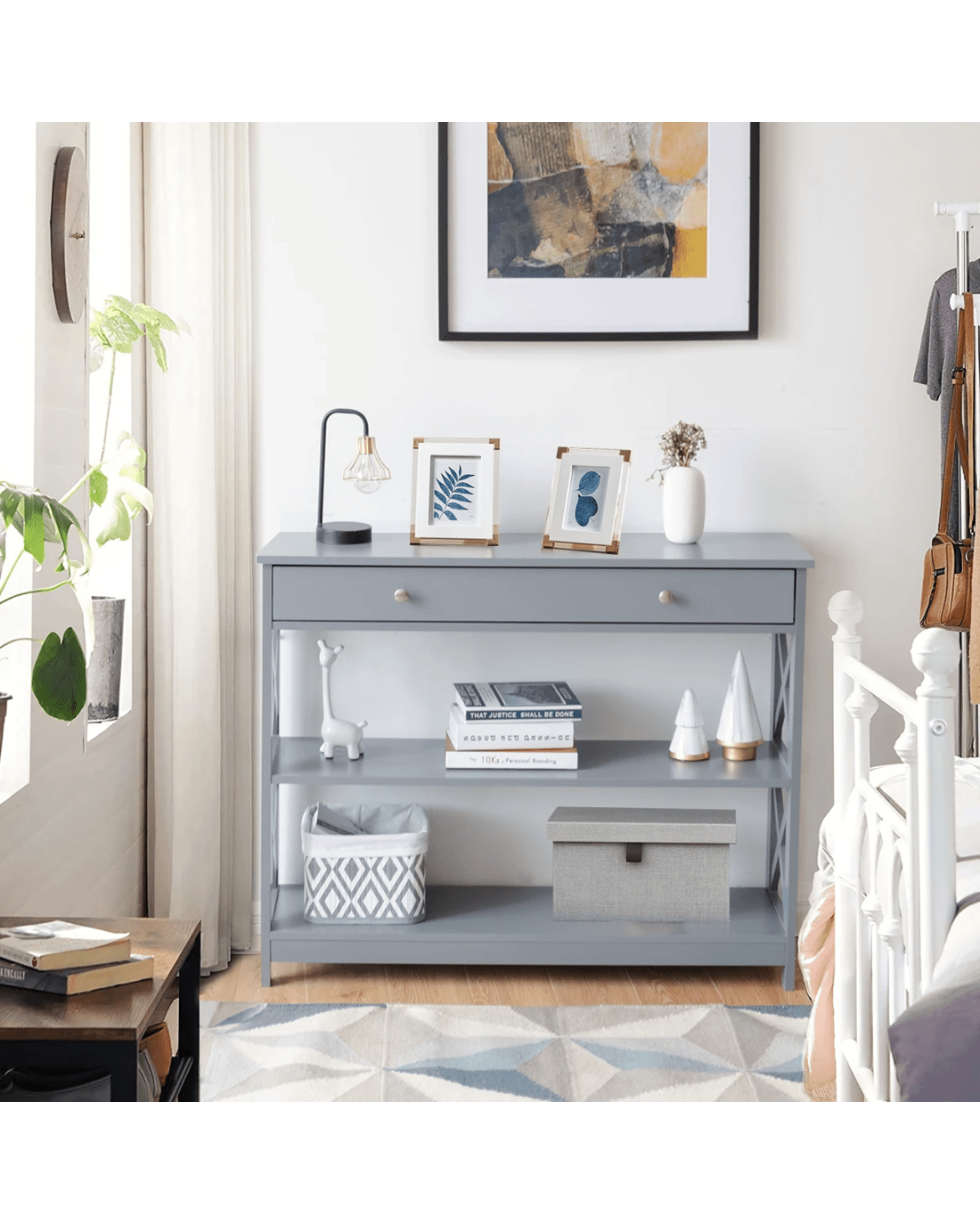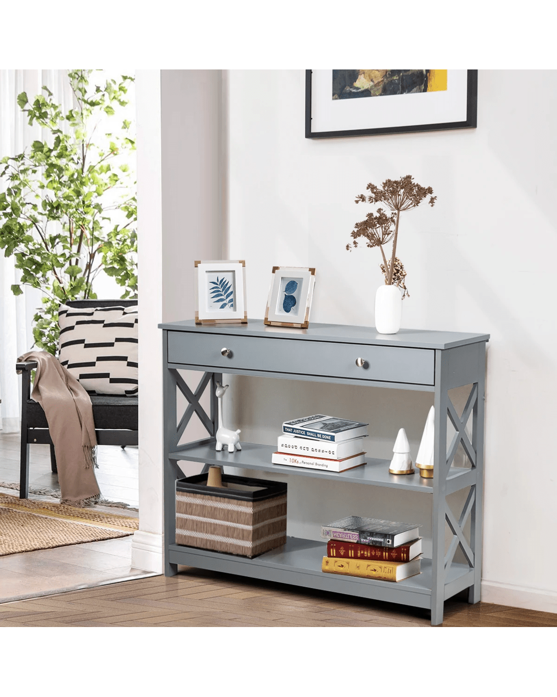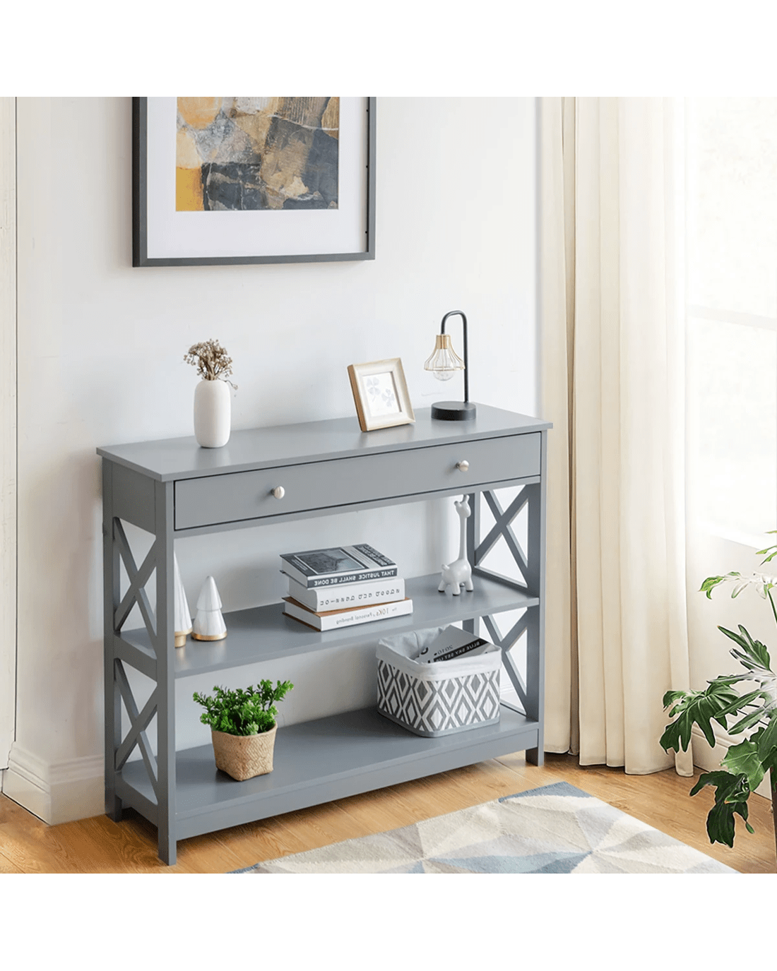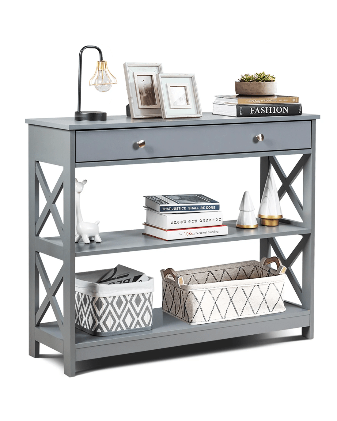 Sold by CostwayCostway 3-Tier Console Table w/Drawer Display Table - Grey