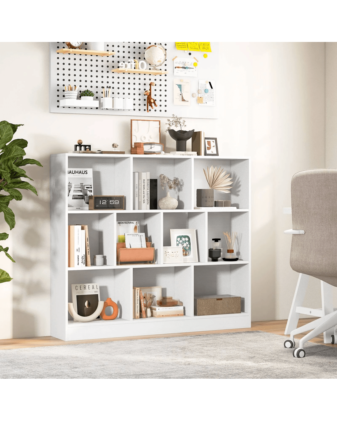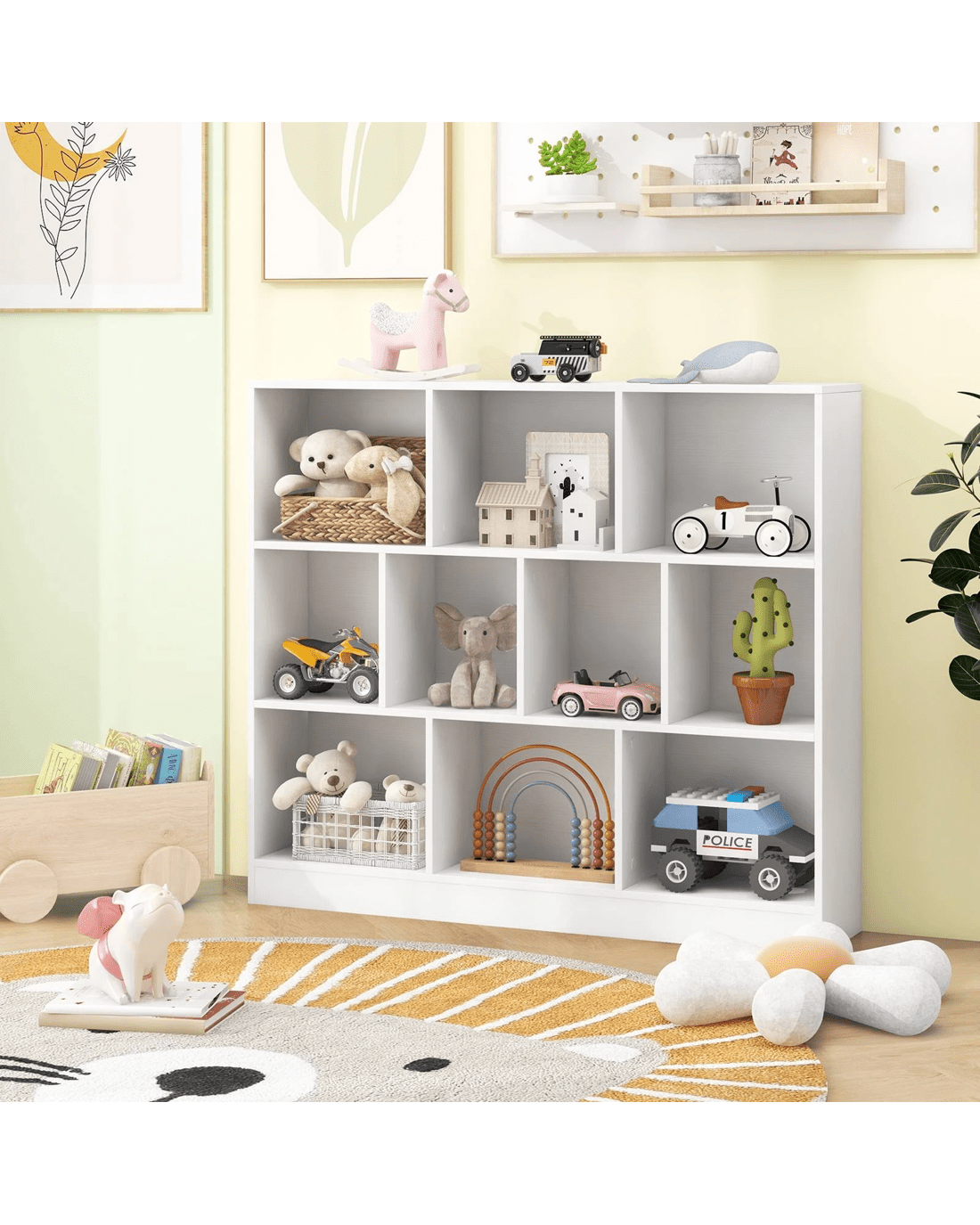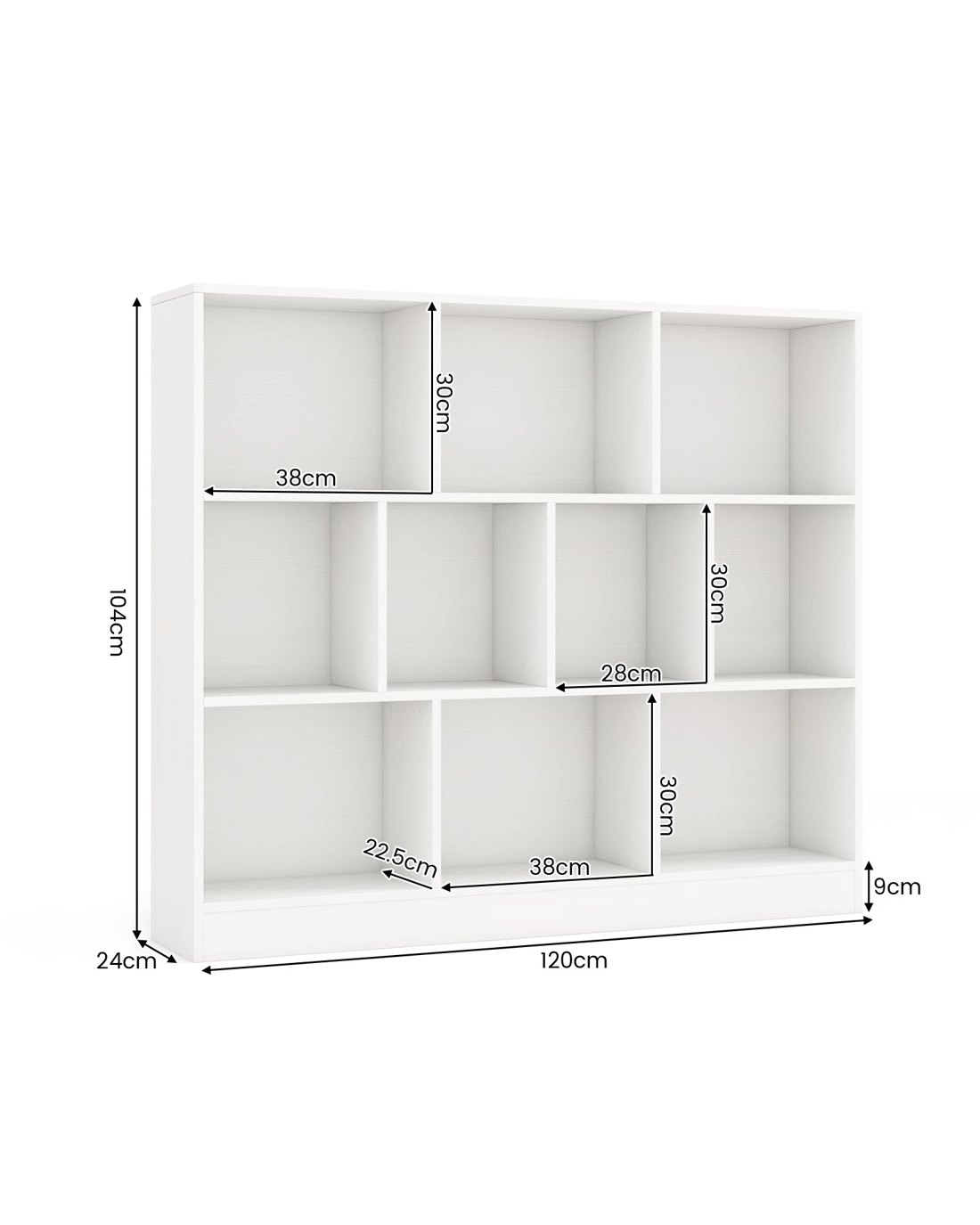 Costway 3-Tier Open Storage 10-Cube Bookshelf Storage Wooden Display Shelf - White
