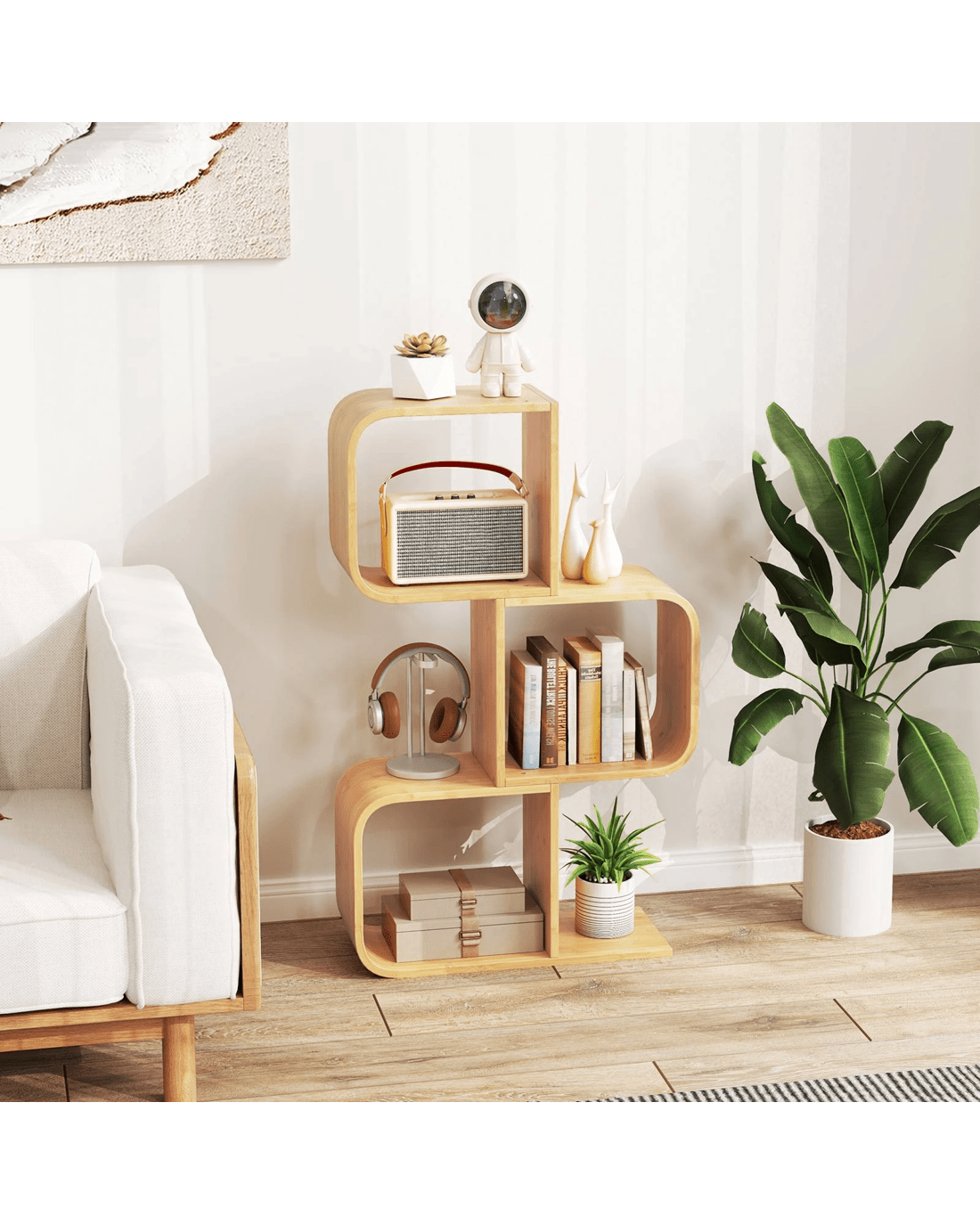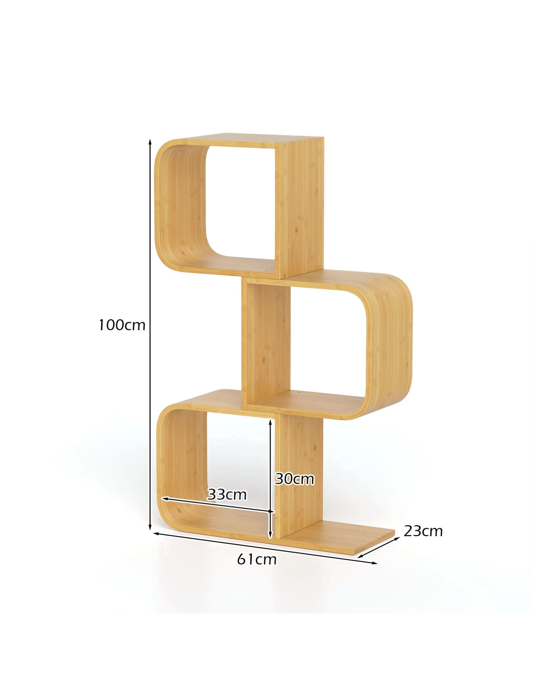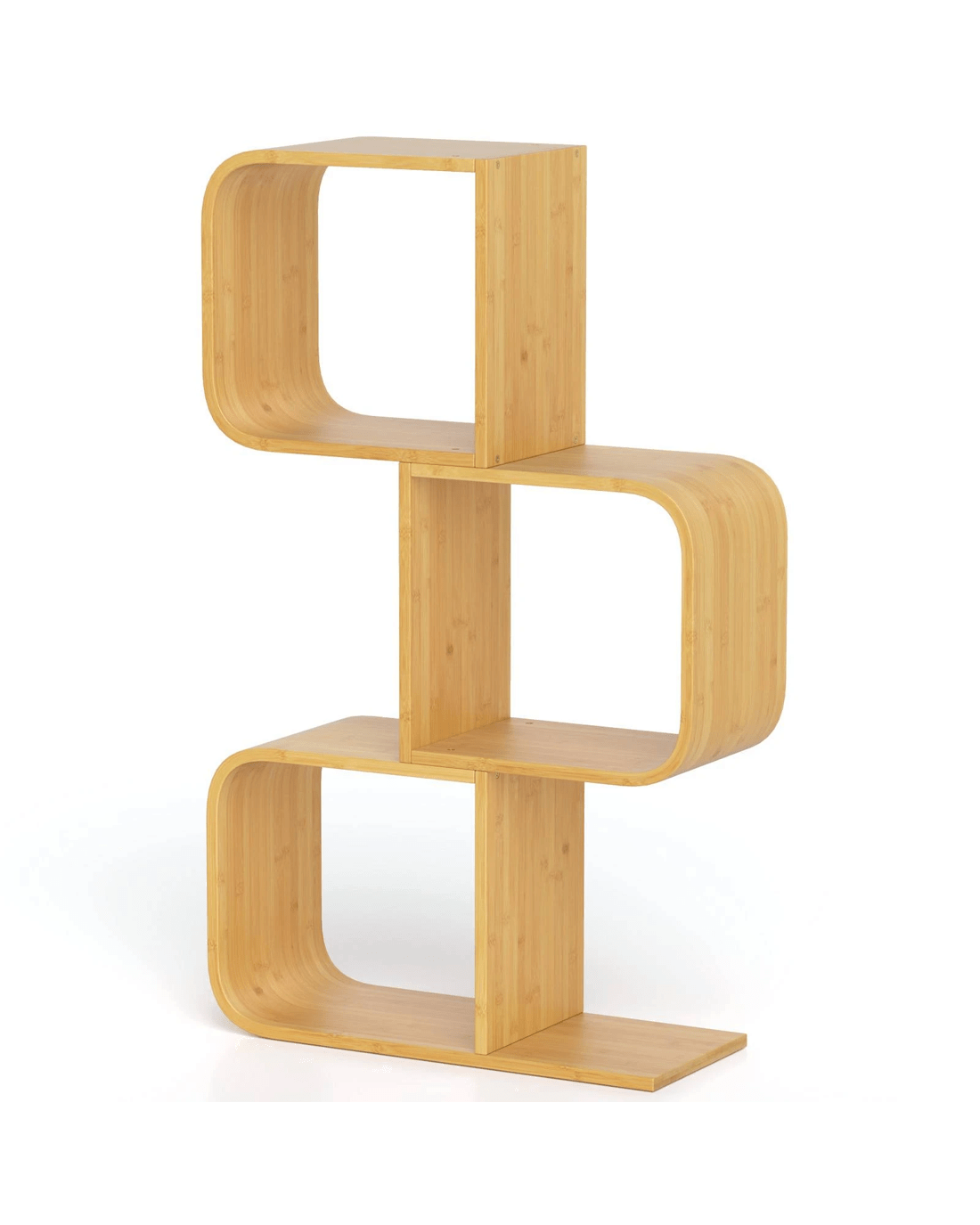 Costway 3-Tier S-Shaped Bookcase Bamboo Bookshelf Corner Display Shelf Storage Organizer - Natural