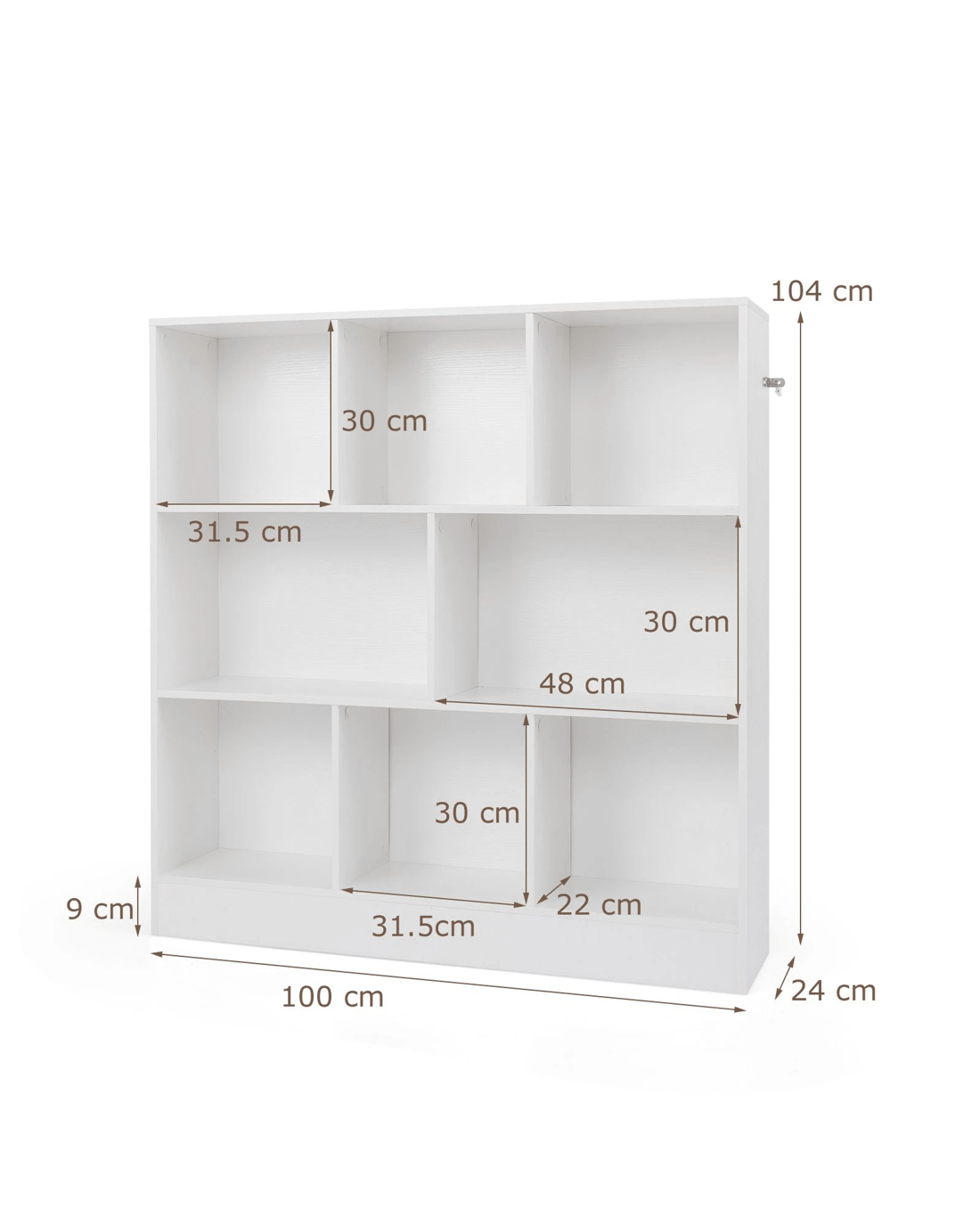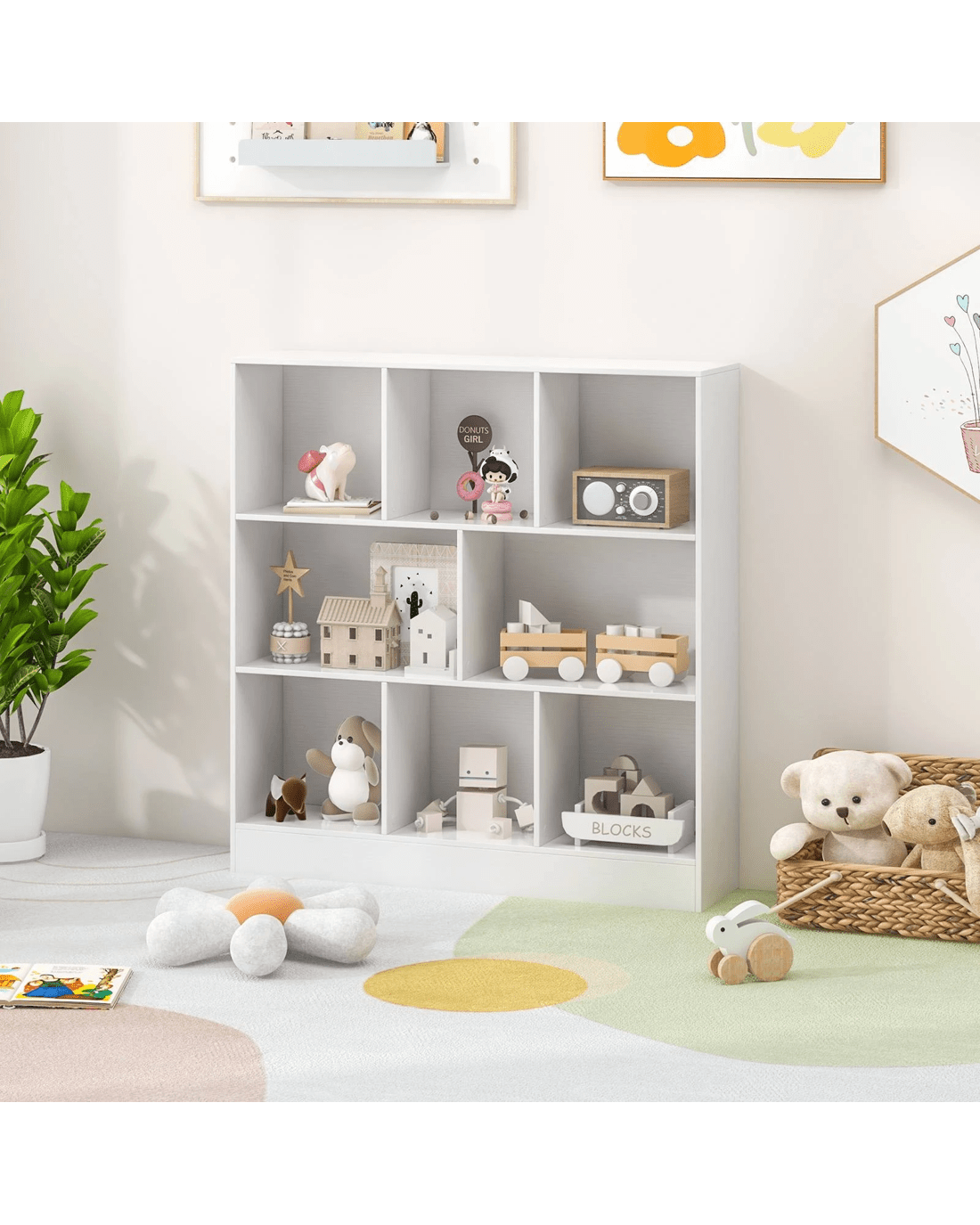 Serves as bookshelf, display stand, storage shelf or toy cabinet