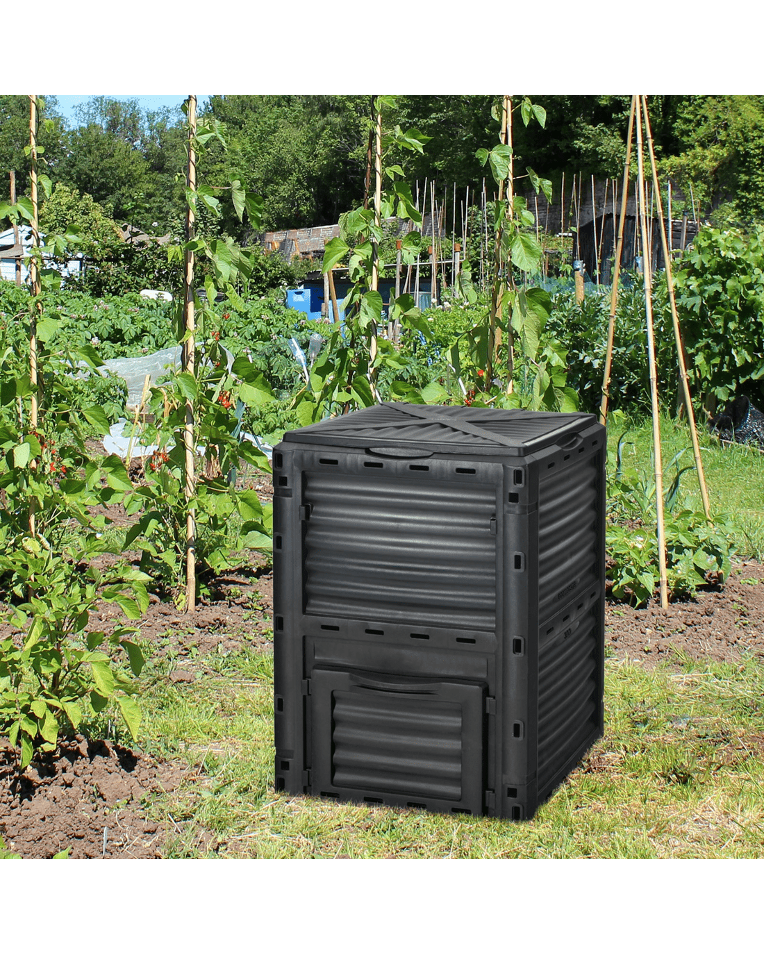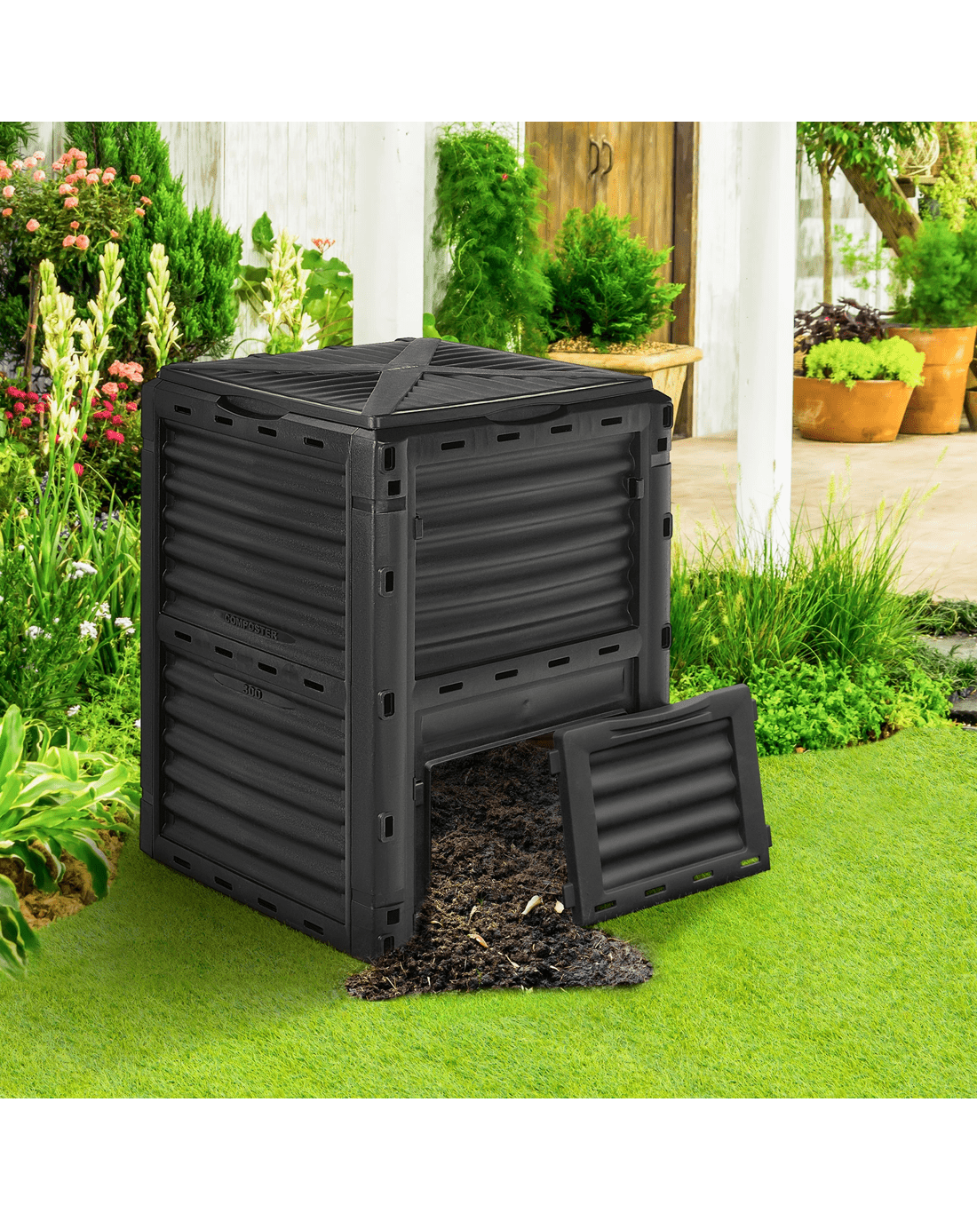 Composting at home is a great way to produce rich soil fertilizers, and our compost bin will help you grow a beautiful garden. With 300L inner capacity, this composter is an effective way to create soil nutrition. All-round air vents enhance aerobic fermentation, promoting the wasting scrap transformation. And sturdy PP frame makes it weather resistant and durable for outdoor use. Besides, the humanized design allows you to open the large lid and dump clippings effectively. The bottom sliding door makes you to take out the fertilizer easily. A complete composting process will be finished in 6-8 weeks under warm temperature, which will be shorter in hot weather.