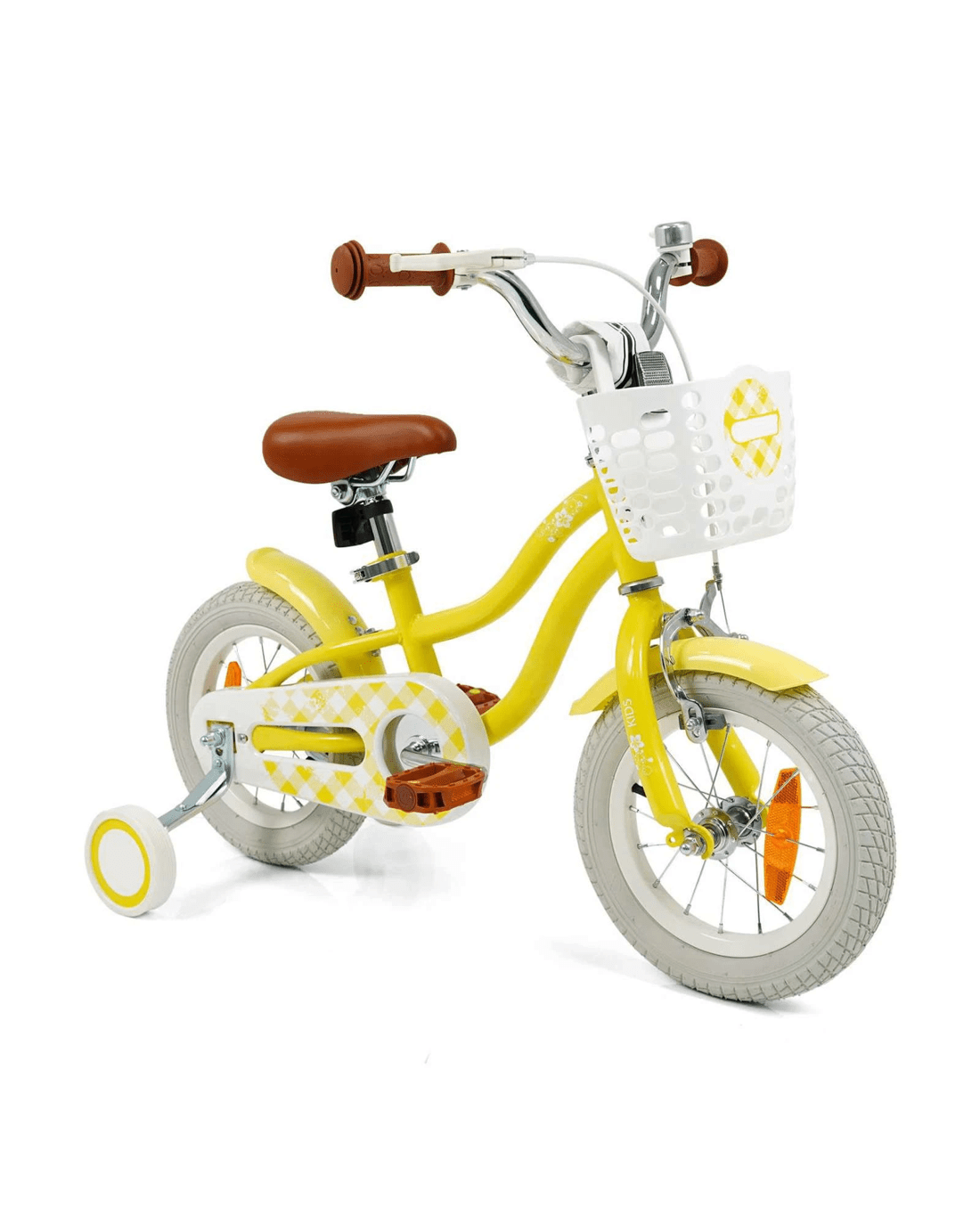 Costway 30cm Bike Training Bicycle w/Detachable Training Wheels & Adjustable Saddle Balance Bike - Yellow