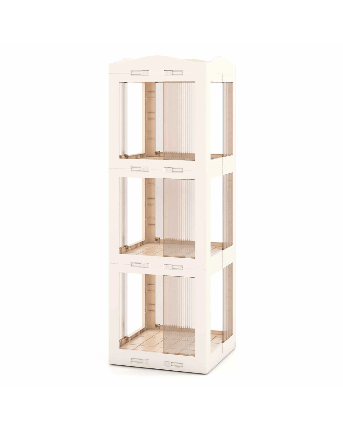 Grid-patterned storage shelves enhance the stability of items placed inside