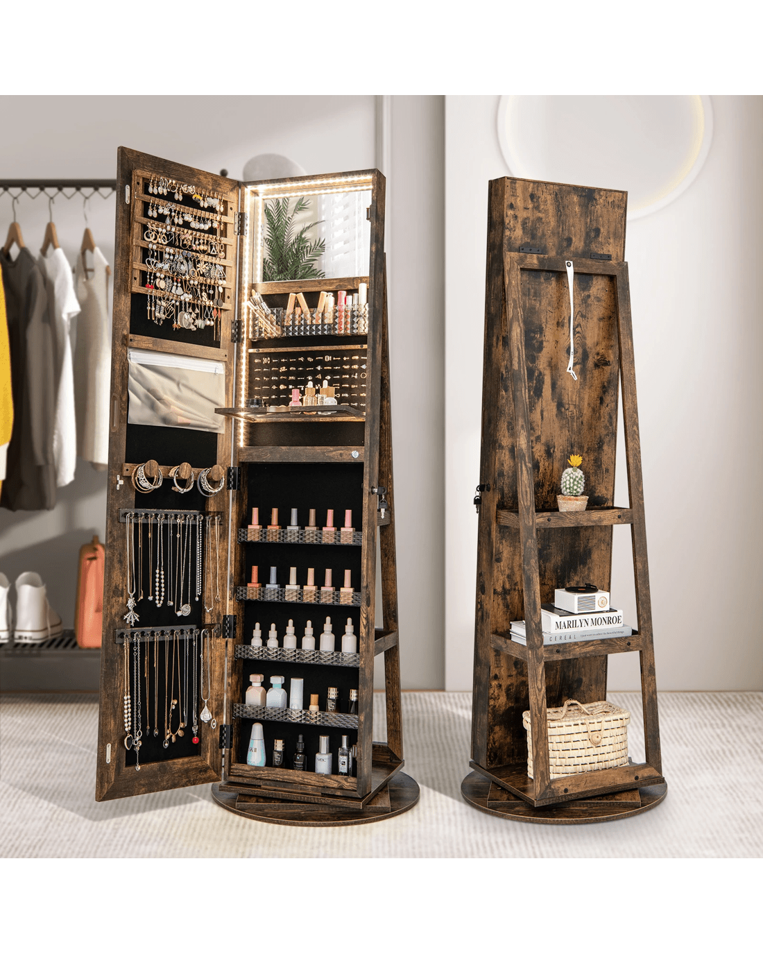 Are you weary of the perpetual challenge of keeping your jewelry neatly organized and readily accessible? Discover the perfect solution with this lockable swivel jewelry cabinet – the ultimate answer to all your jewelry storage needs!