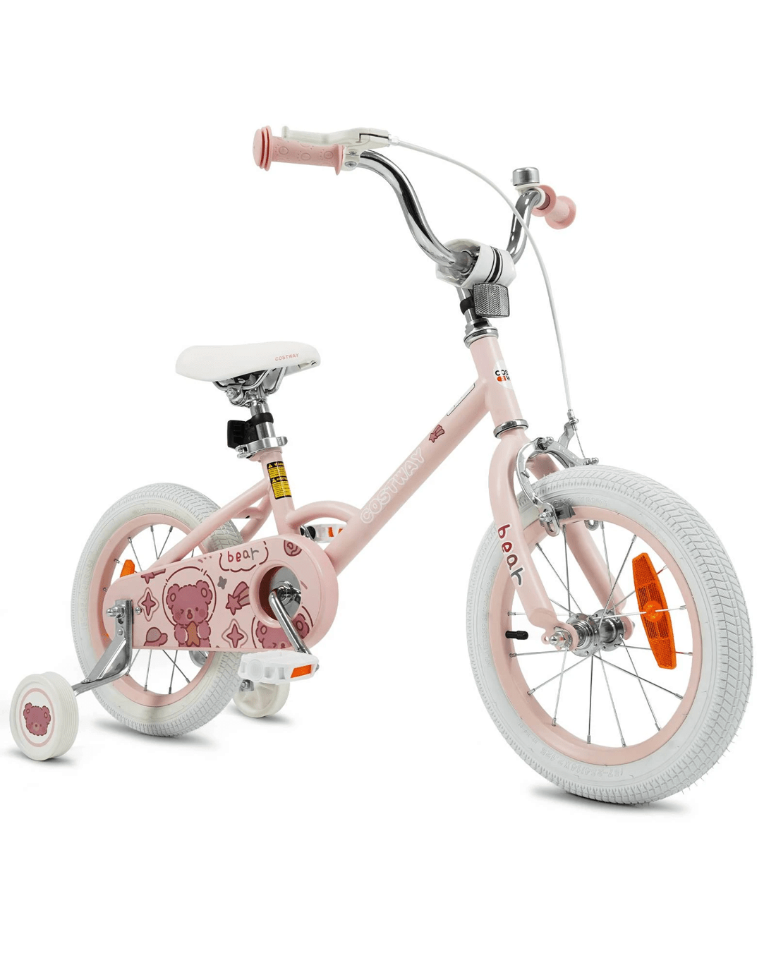 Get your little one ready for exciting outdoor adventures with our 35cm little ones bicycle! Specially crafted for young riders, this stylish bike combines fun and function, making every trip memorable. Adjustable height makes it ideal for 3-5 years old little ones. The fully enclosed chain guard protects little one's feet. Front and rear reflectors make little one visible in low-light conditions, keeping them safer during dusk rides or cloudy days. The bike bell adds extra fun to each journey. Additionally, with 2 detachable training wheels, the little ones bike is perfect for little one learning to ride. The high-quality tires ensure a safe and steady riding experience on flat surfaces.