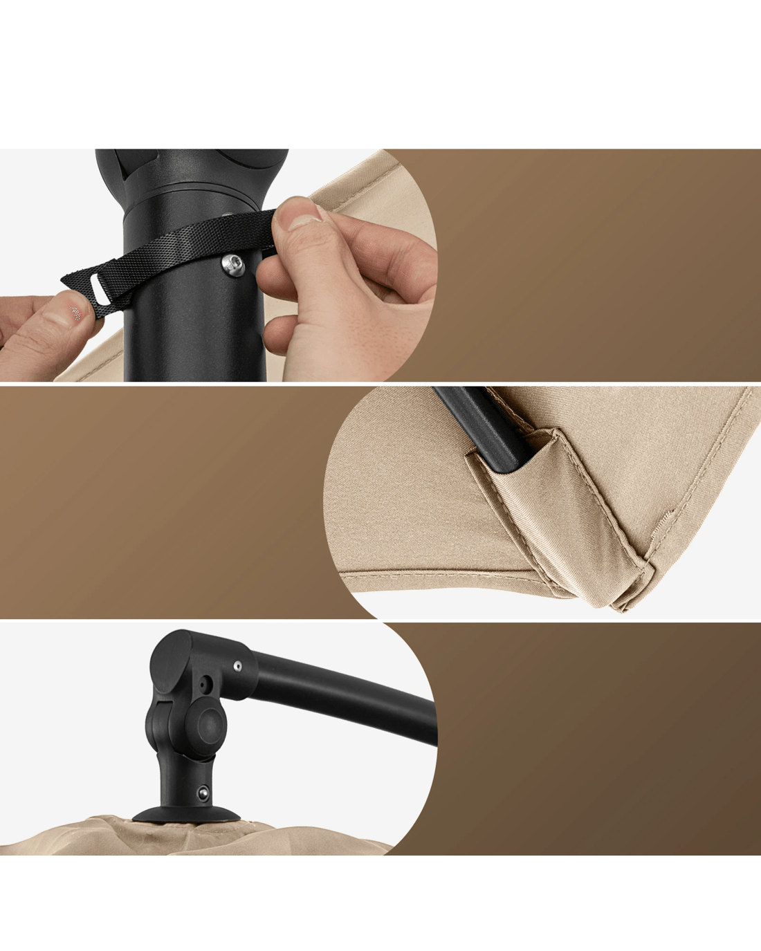 Adopts a crank handle with silent operation, easy and effortless to open or close the umbrella