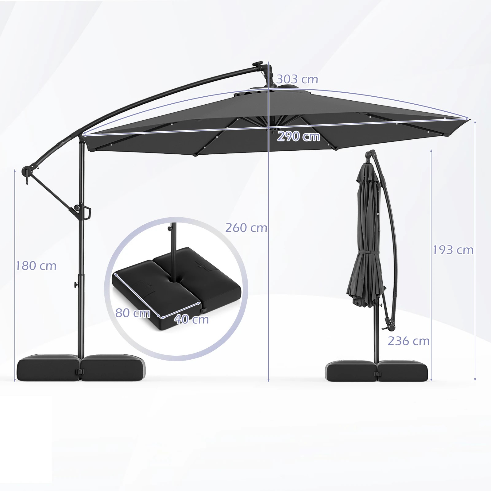 Costway 3m Solar Offset Outdoor LED Umbrella Cantilever