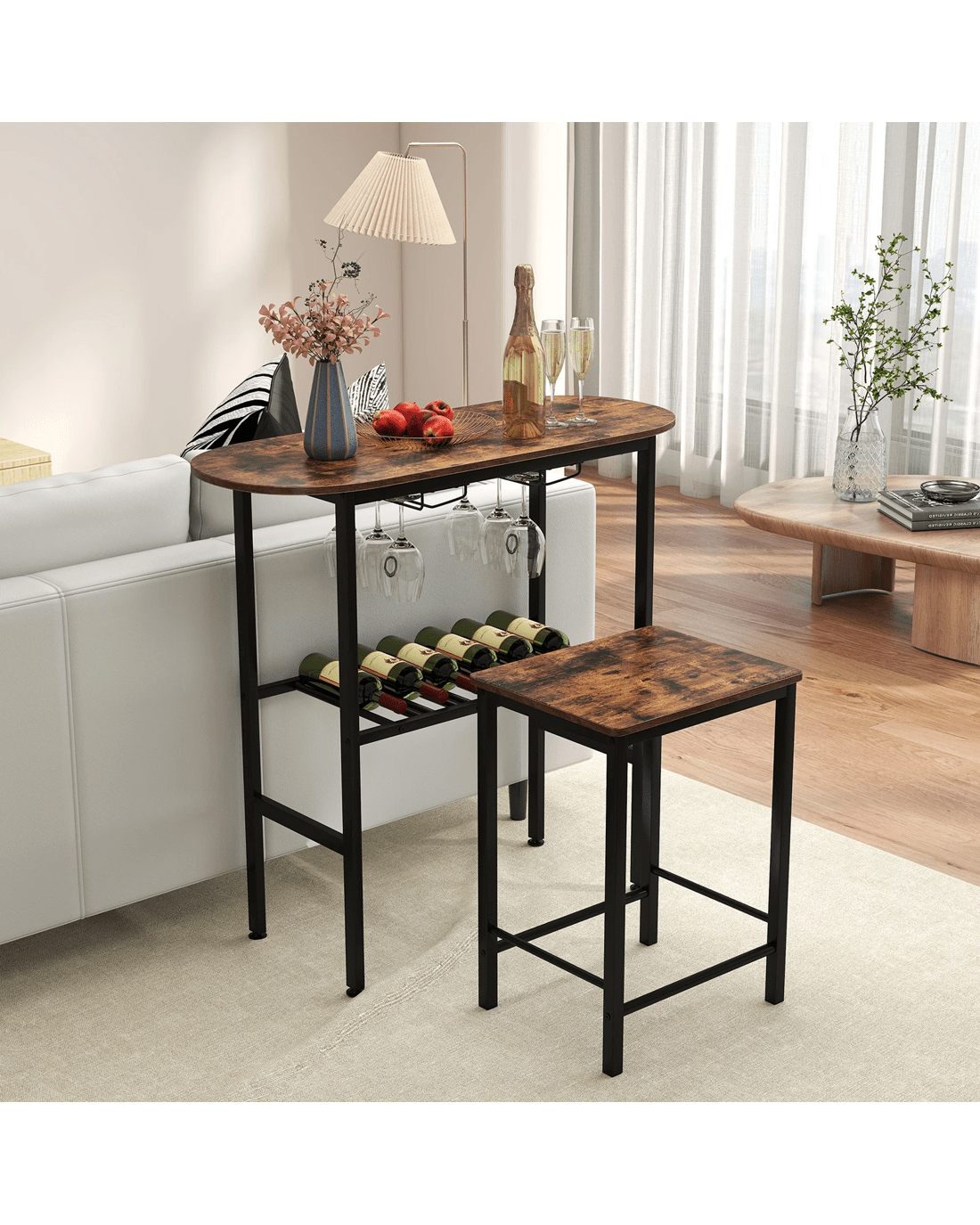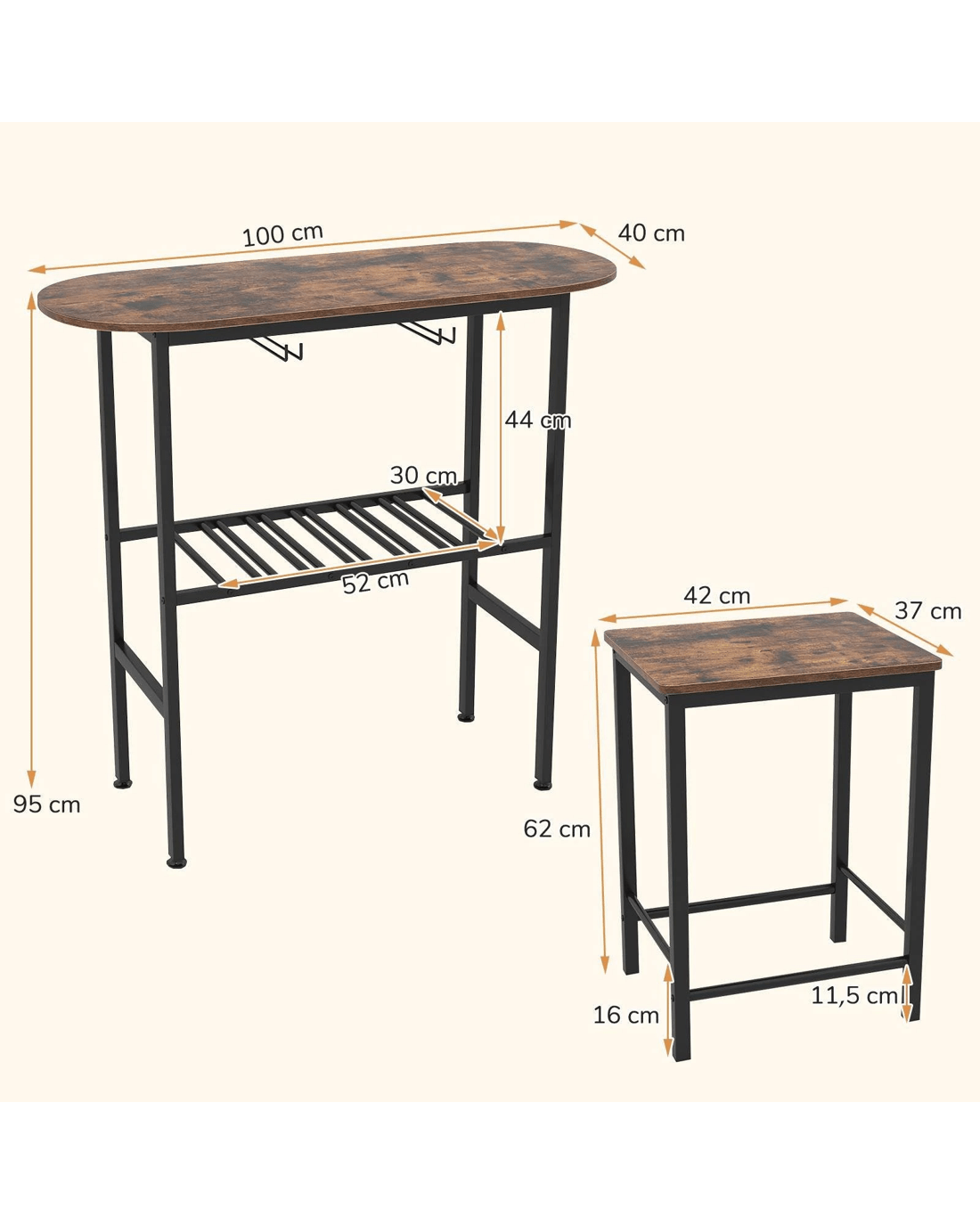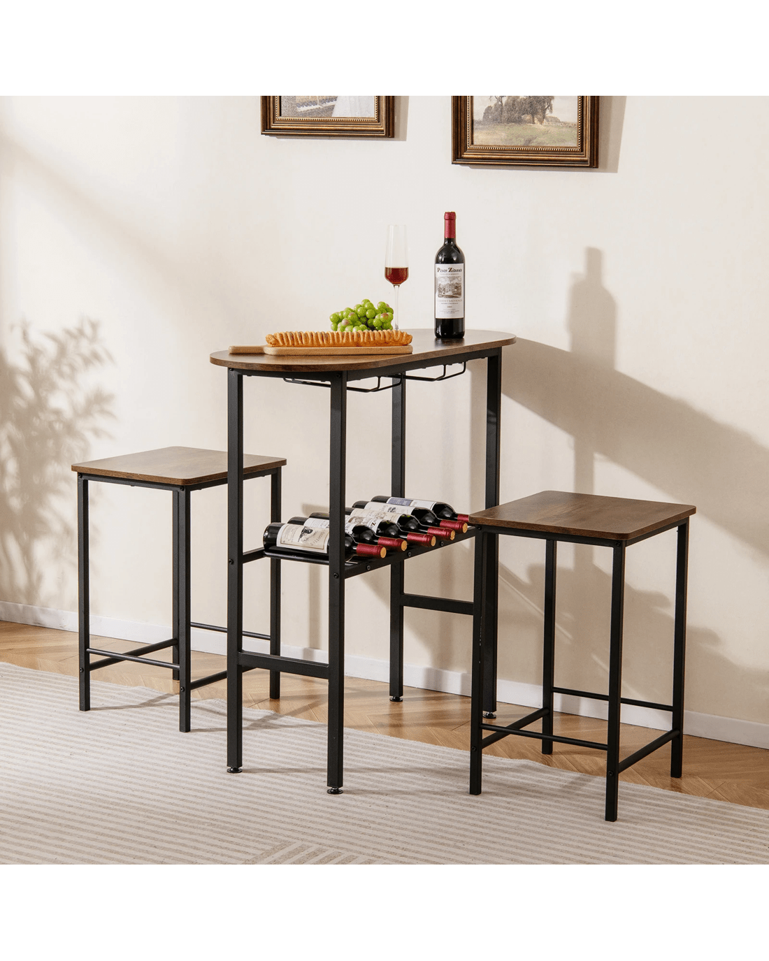 Sold by CostwayCostway 3PCS Dining Table Set & 2 Stools w/Storage Rack Glass Holder Footrest Metal Frame
