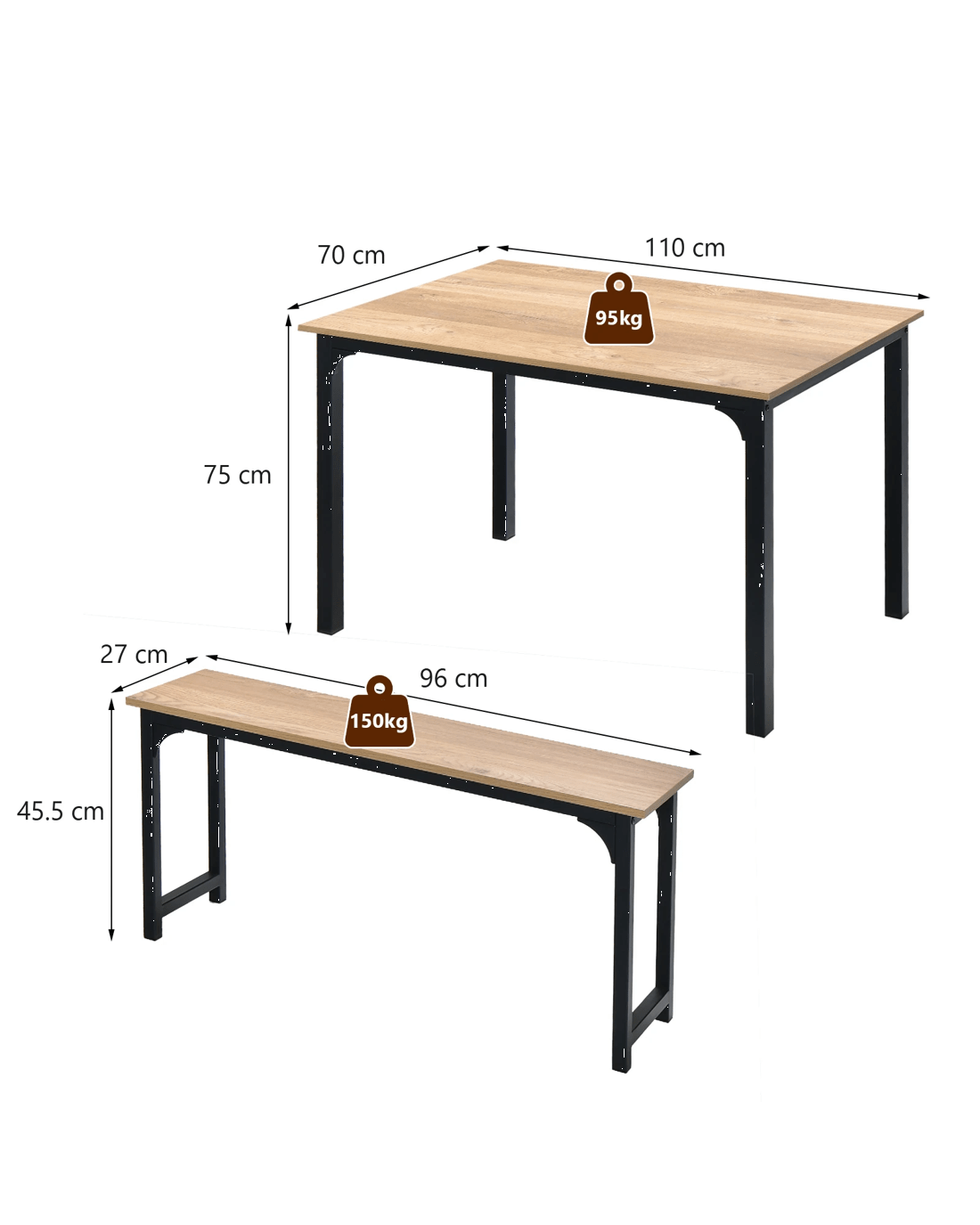 Comes with 1 spacious dining table and 2 benches