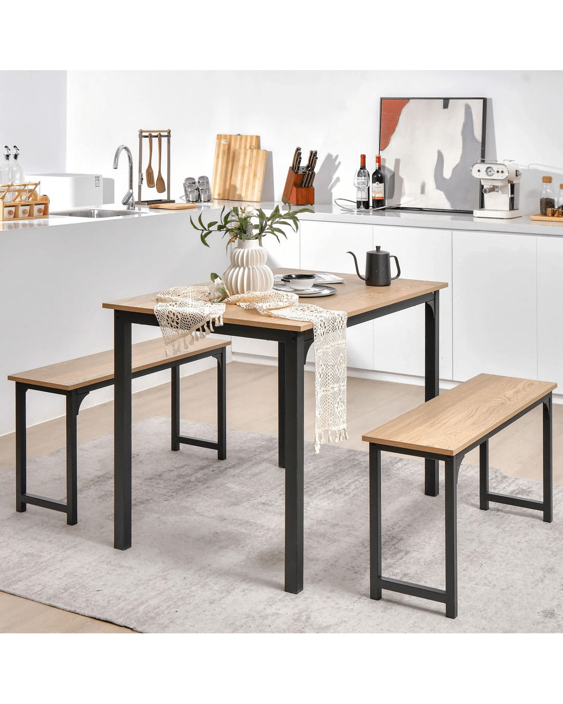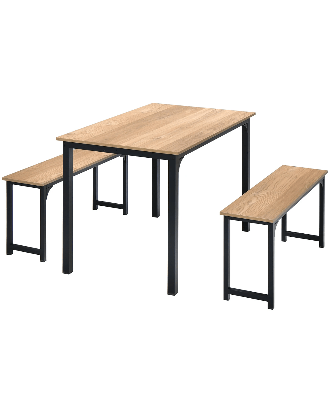 This 3-piece dining set includes a rectangular dining table and 2 benches, which can seat 2-4 people without crowding.