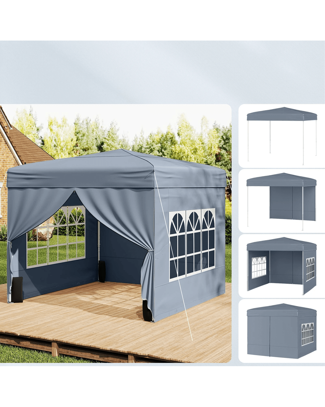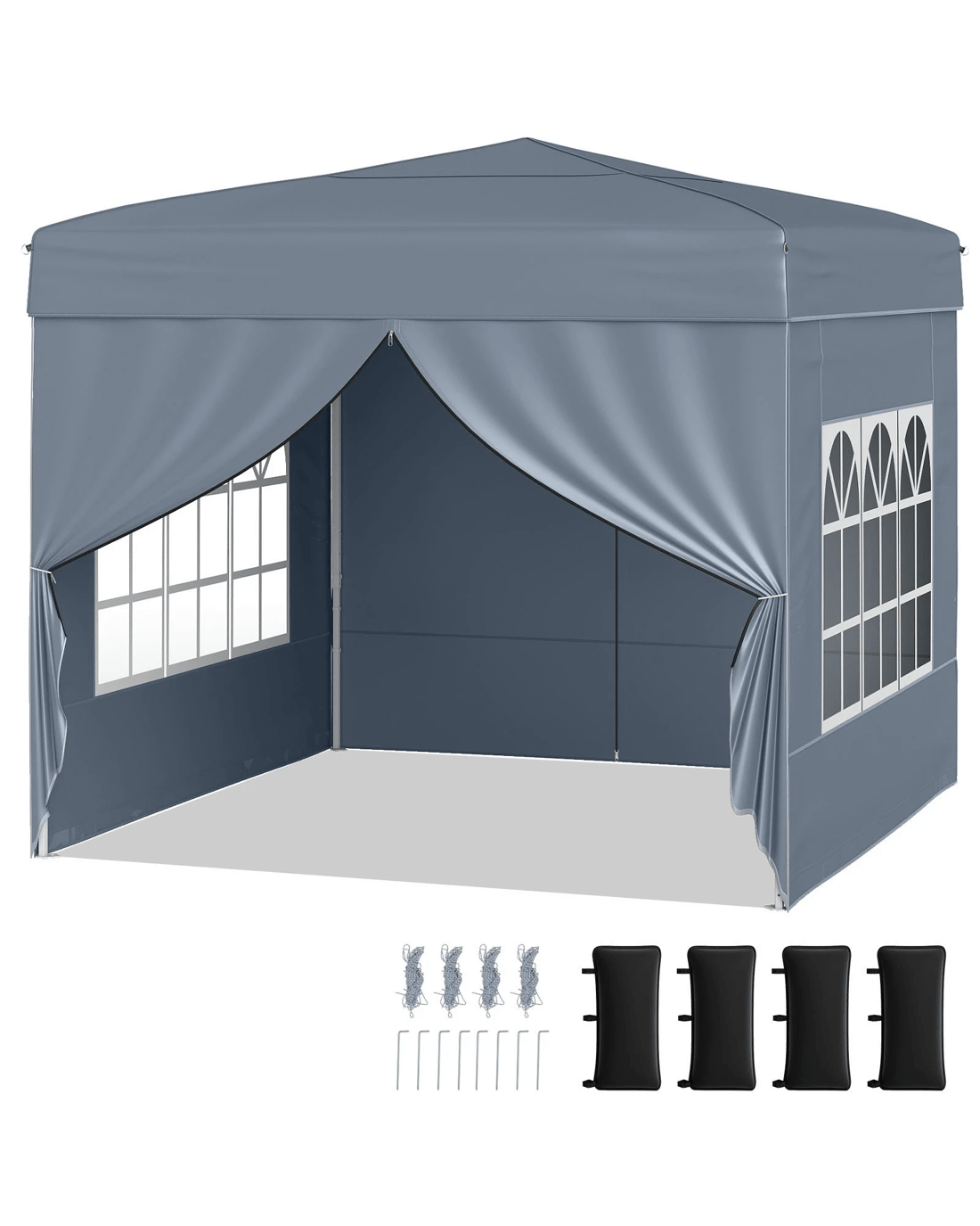 Includes 2 sidewalls with transparent windows, let the natural light come in