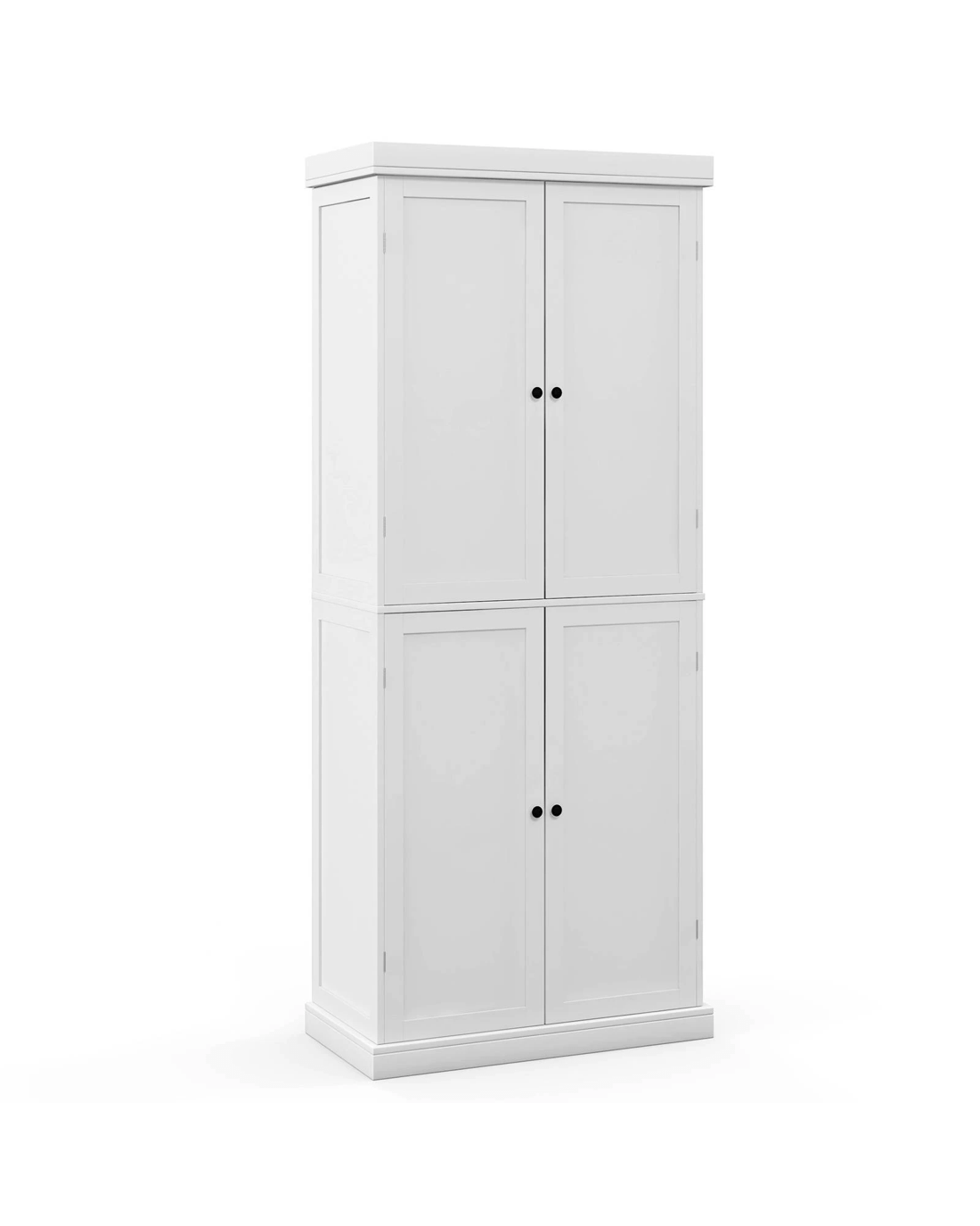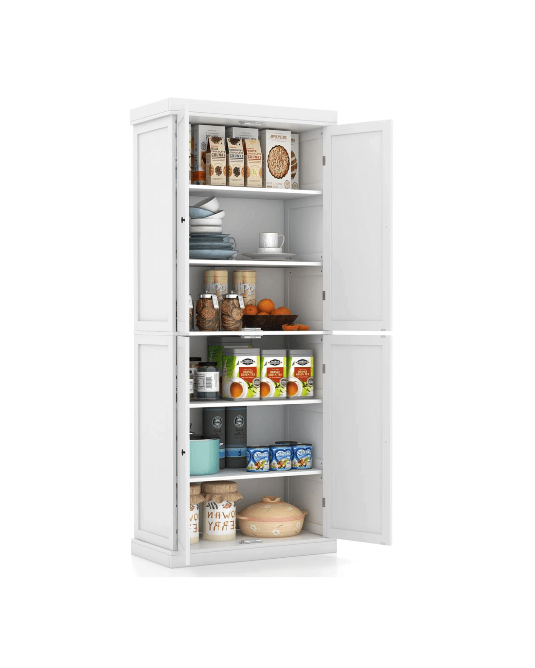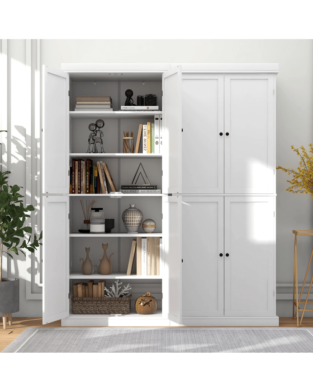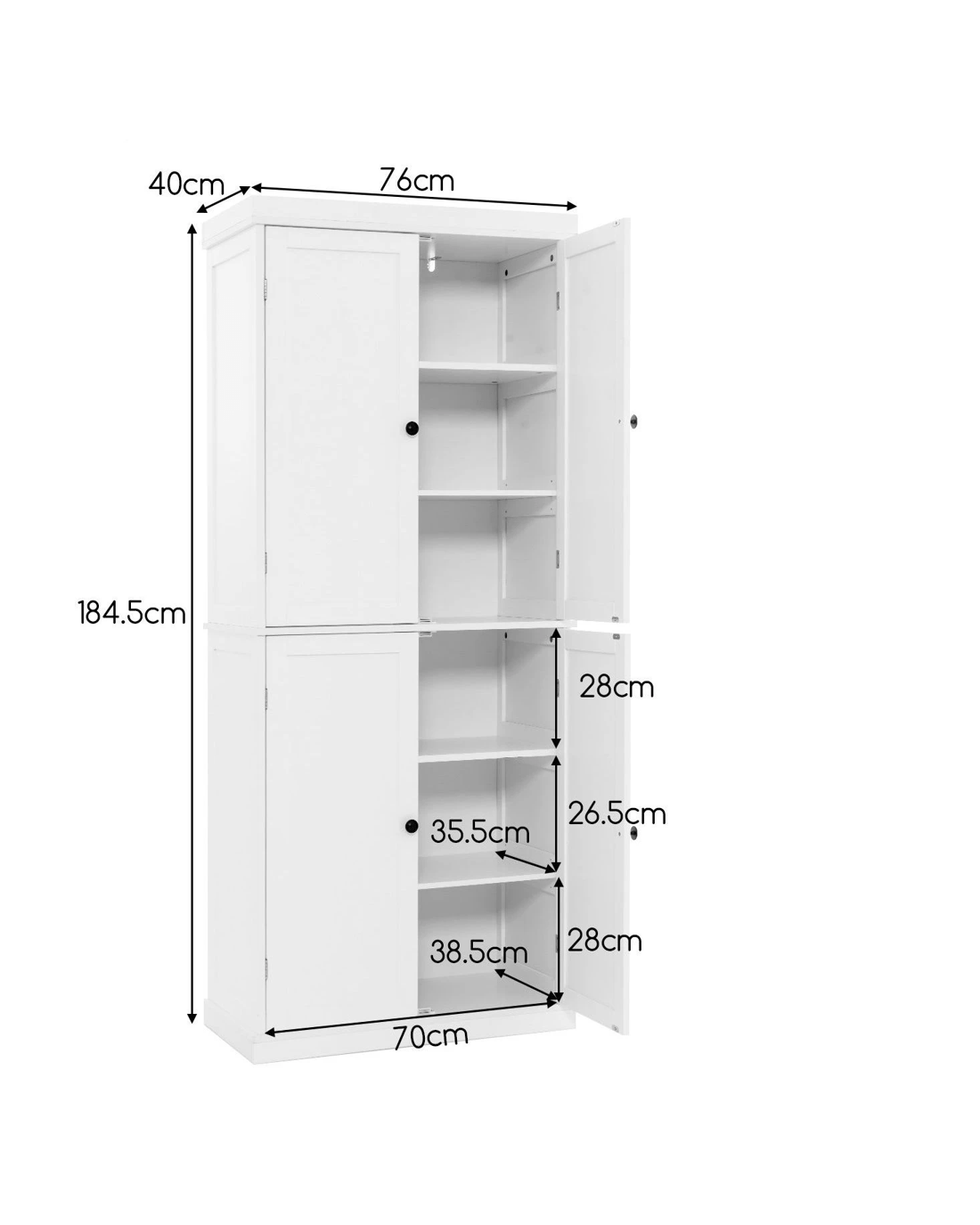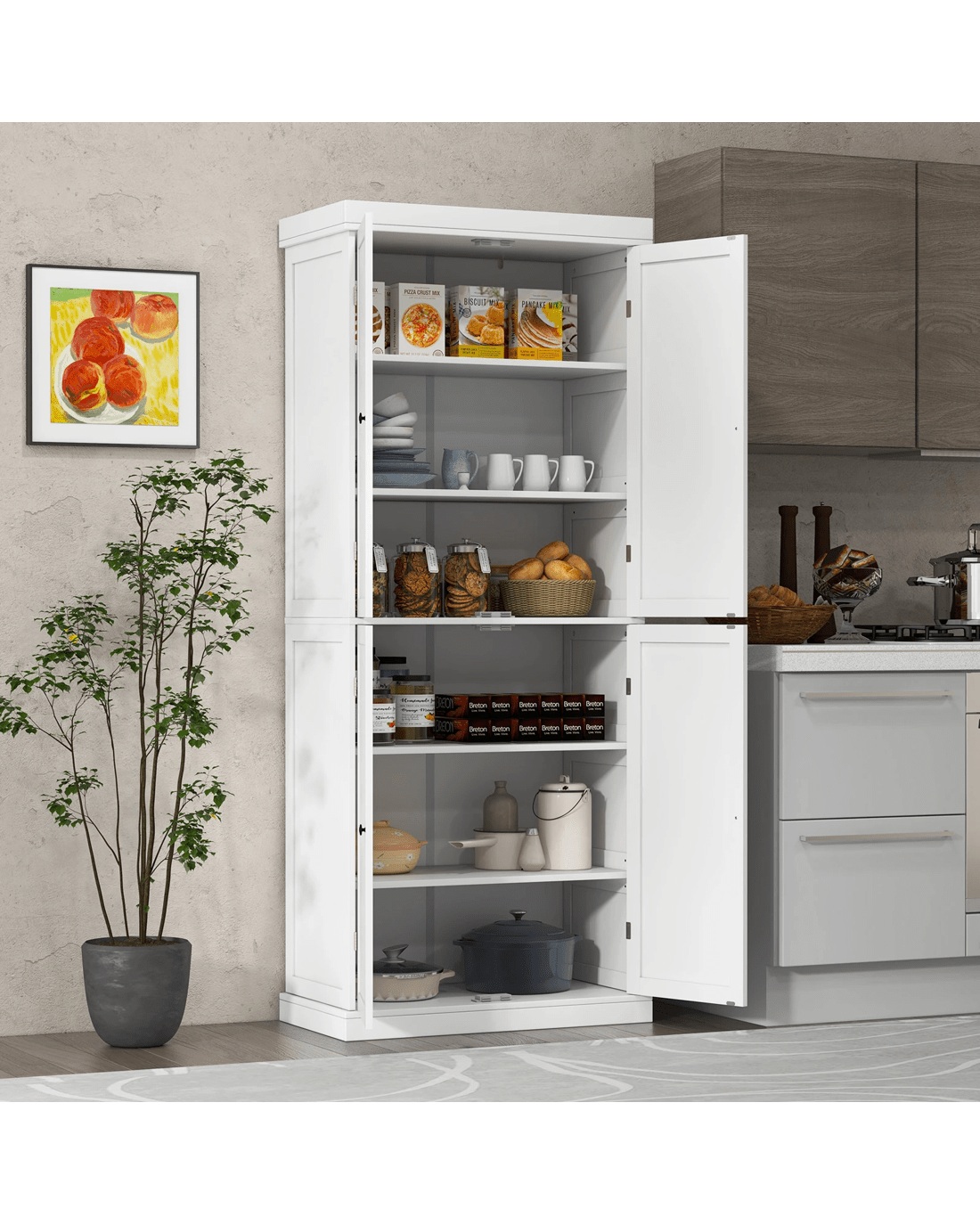 Say goodbye to a cluttered kitchen! Attached with 4 doors and 6-tier shelves, the pantry cabinet provides you with multiple storage options for assorting supplies.
